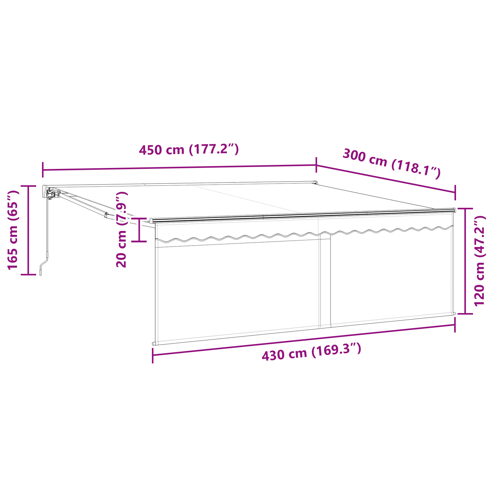 Tahle přizpůsobitelná markýza spojuje styl s funkčností a tvoří skvělé útočiště pro každou zahradu či terasu. Je navržená pro venkovní využití, antracitová barva dodává šmrnc a široká plocha stínu vám poskytne útočiště za slunných dní. Pro ty, co mají rádi moderní design, se tato markýza skvěle hodí jak do městského tak do venkovského prostředí díky svým čistým liniím a minimalistickému stylu.
