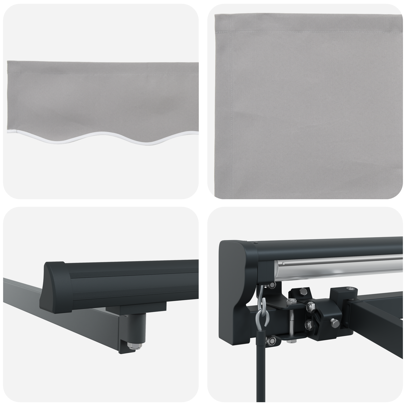 • Odolné materiály: Tato markýza je vyrobená z kombinace polyesteru a kovu – skvělá pevná struktura. Polyester odolává každodennímu opotřebení, zatímco kovový rám zajišťuje stabilitu a zvyšuje její trvanlivost v různých povětrnostních podmínkách.