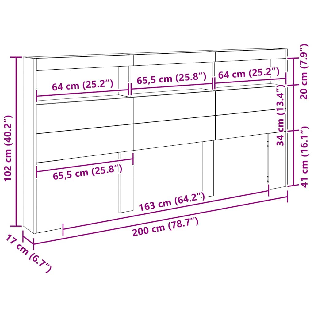 Čelo postele Černý dub 200 x 17 x 102 cm kompozitní dřevo