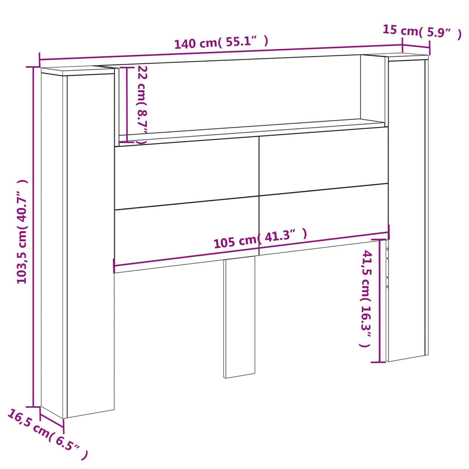 Čelo postele Kouřový dub 140 x 16,5 x 103,5 cm kompozitní dřevo