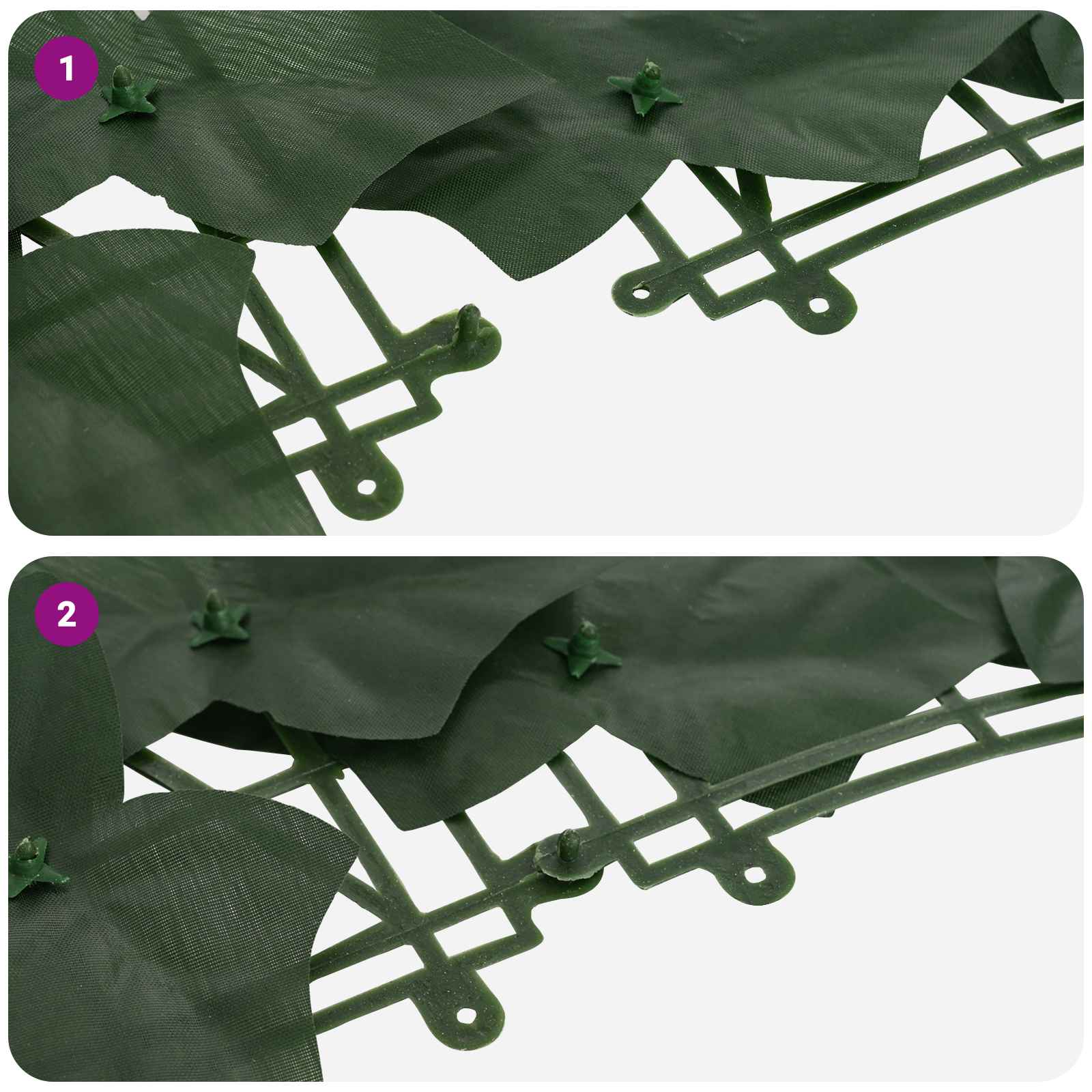 Odolný listový plot: Vyroben z polyethylenu a tkanin, tento plot s bramborovými listy je UV-odolný a odolný vůči povětrnostním vlivům, takže vydrží různé roční období.