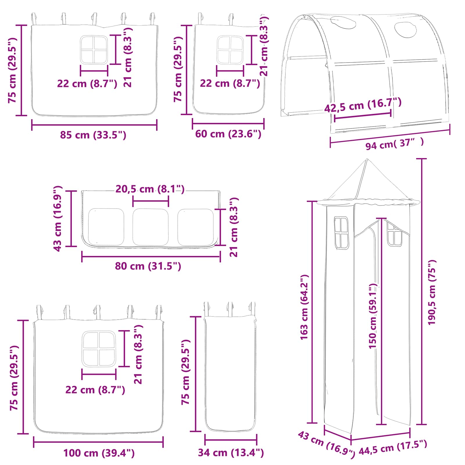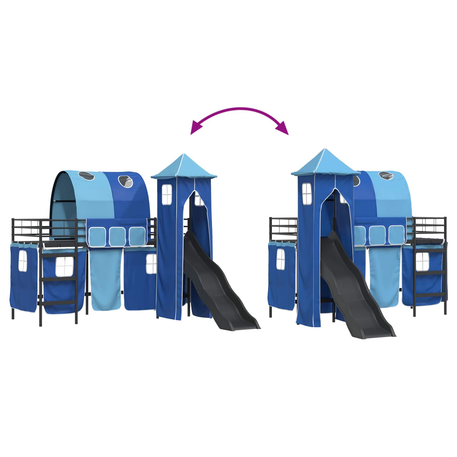Tahle moderní dětská palanda poskytuje vašemu dítěti ideální prostor na odpočinek i hru, díky chytrému designu se závěsy, obloukem, skluzavkou a věží. Vytvoří hodiny zábavy a kreativity. Navržená v moderním stylu, palanda promění obyčejnou ložnici nebo hernu na multifunkční prostor, který vypadá skvěle a slouží jako spací i herní zóna. Je to ideální řešení pro to, aby byl dětský pokoj zábavný i uspořádaný, s jedinečným matným černým rámem z pevného kovu, který zajišťuje dlouhou výdrž, a krásnými modro-černými závěsy, které dodávají barvu a soukromí.