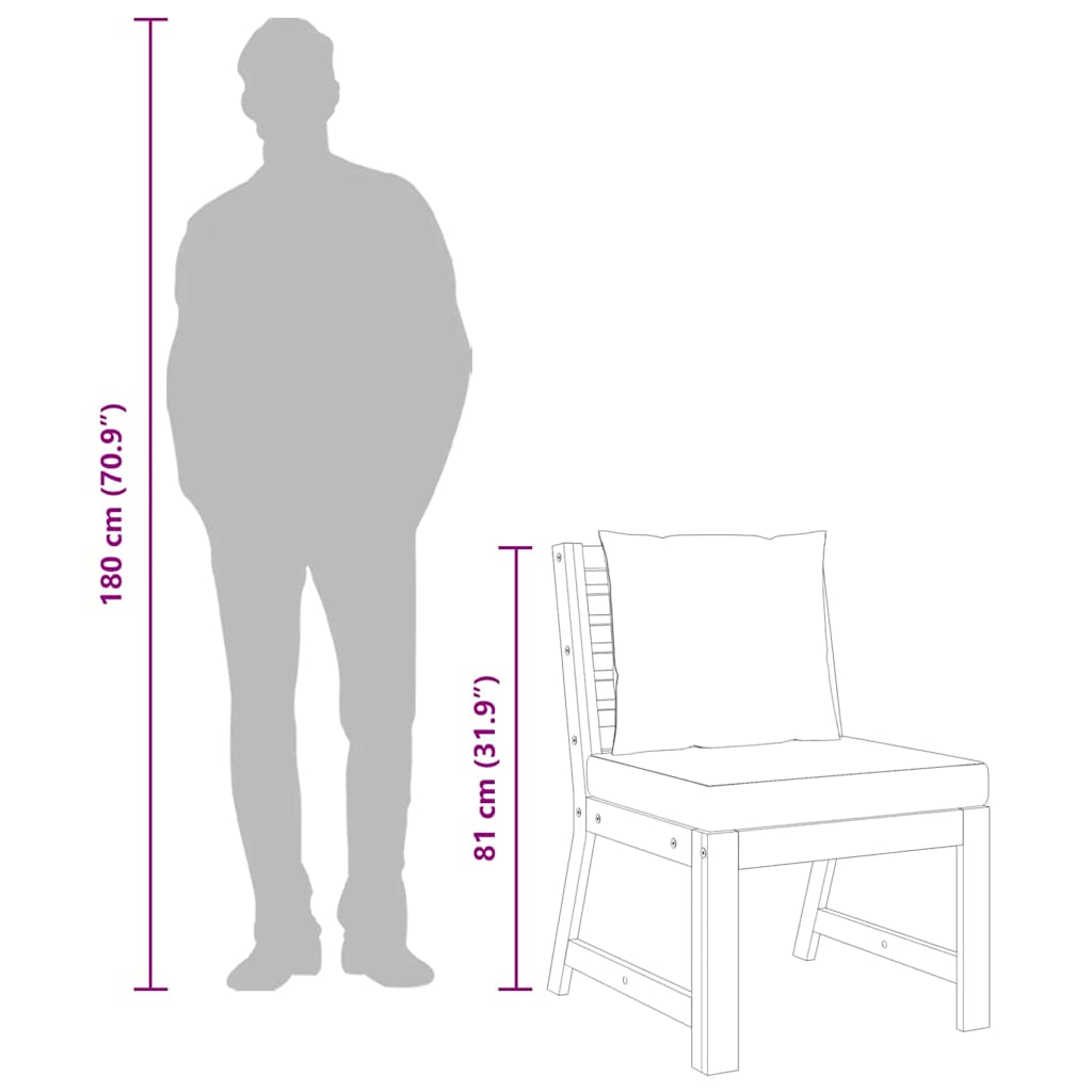Středová pohovka je vyrobená z extra odolného masivního akáciového dřeva a hodí se na terasu, zahradu, k bazénu a další místa. Akáciové dřevo je tropické tvrdé dřevo, které je odolné vůči povětrnostním vlivům a má dlouhou životnost. Hustě polstrované podušky na sedák a opěradlo vám poskytnou extra pohodlí při sezení a oporu vašim zádům.