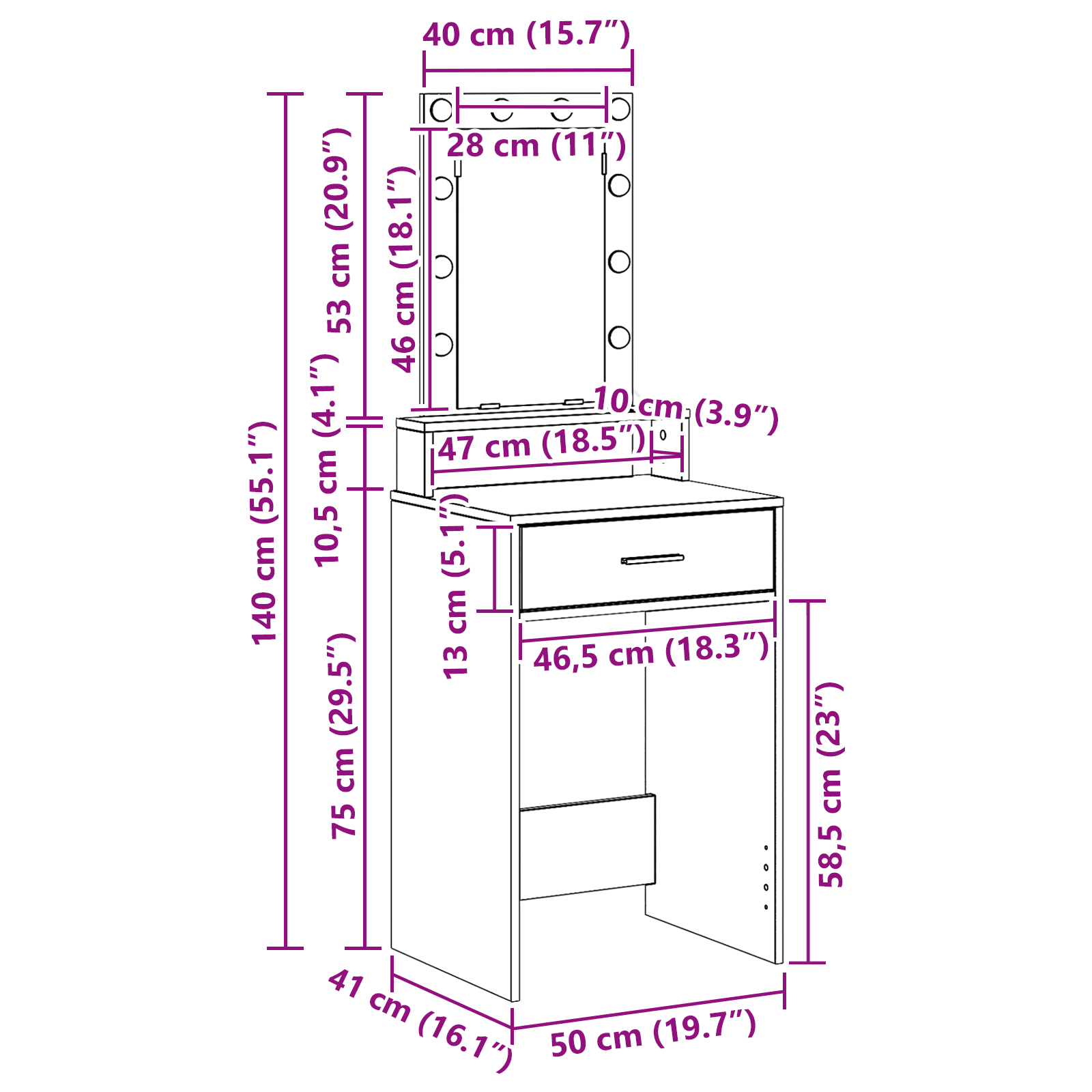 Kosmetický stůl Bílá 50 x 41 x 140 cm kompozitní dřevo