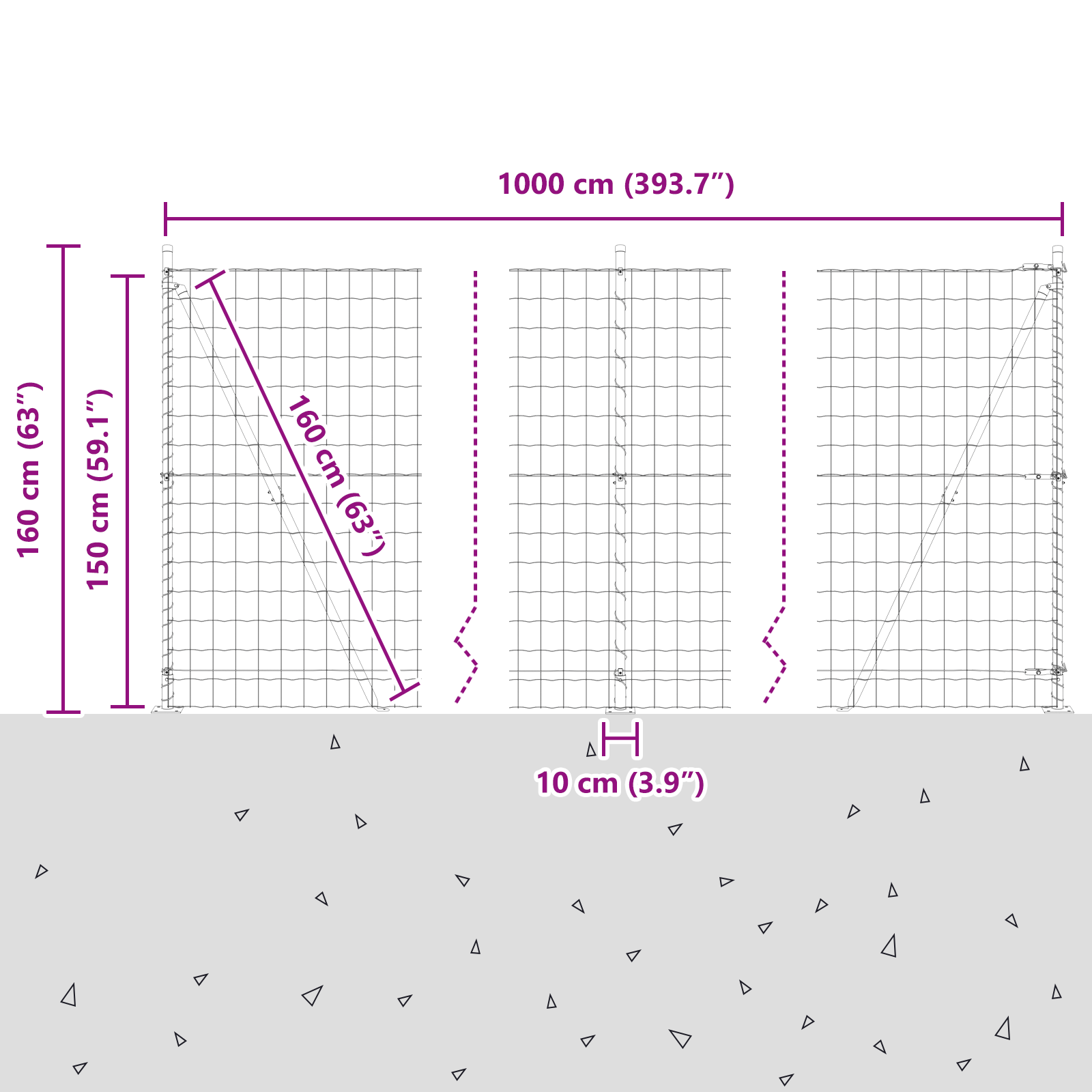 • Celkové rozměry: 1000 x 3,2 x 150 cm (D x Š x V)