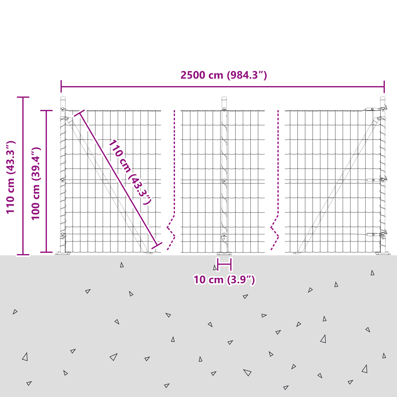 • Celkové rozměry: 2500 x 3,2 x 100 cm (D x Š x V)