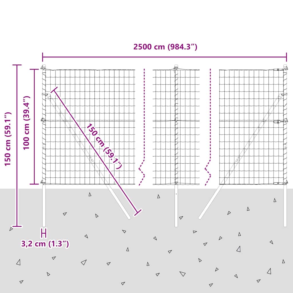 • Celkové rozměry: 2500 x 3,2 x 100 cm (D x Š x V)