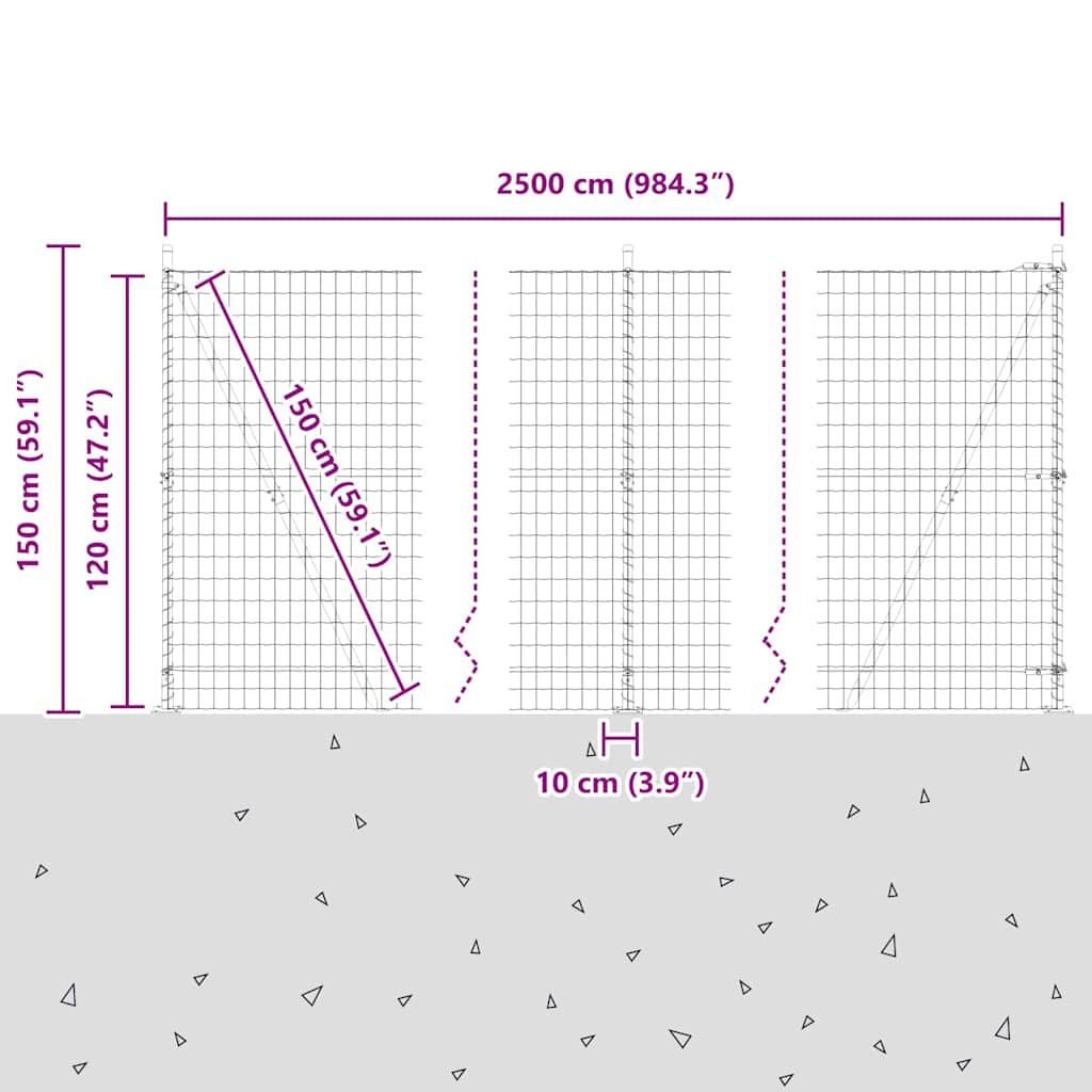 • Celkové rozměry: 2500 x 3,2 x 120 cm (D x Š x V)