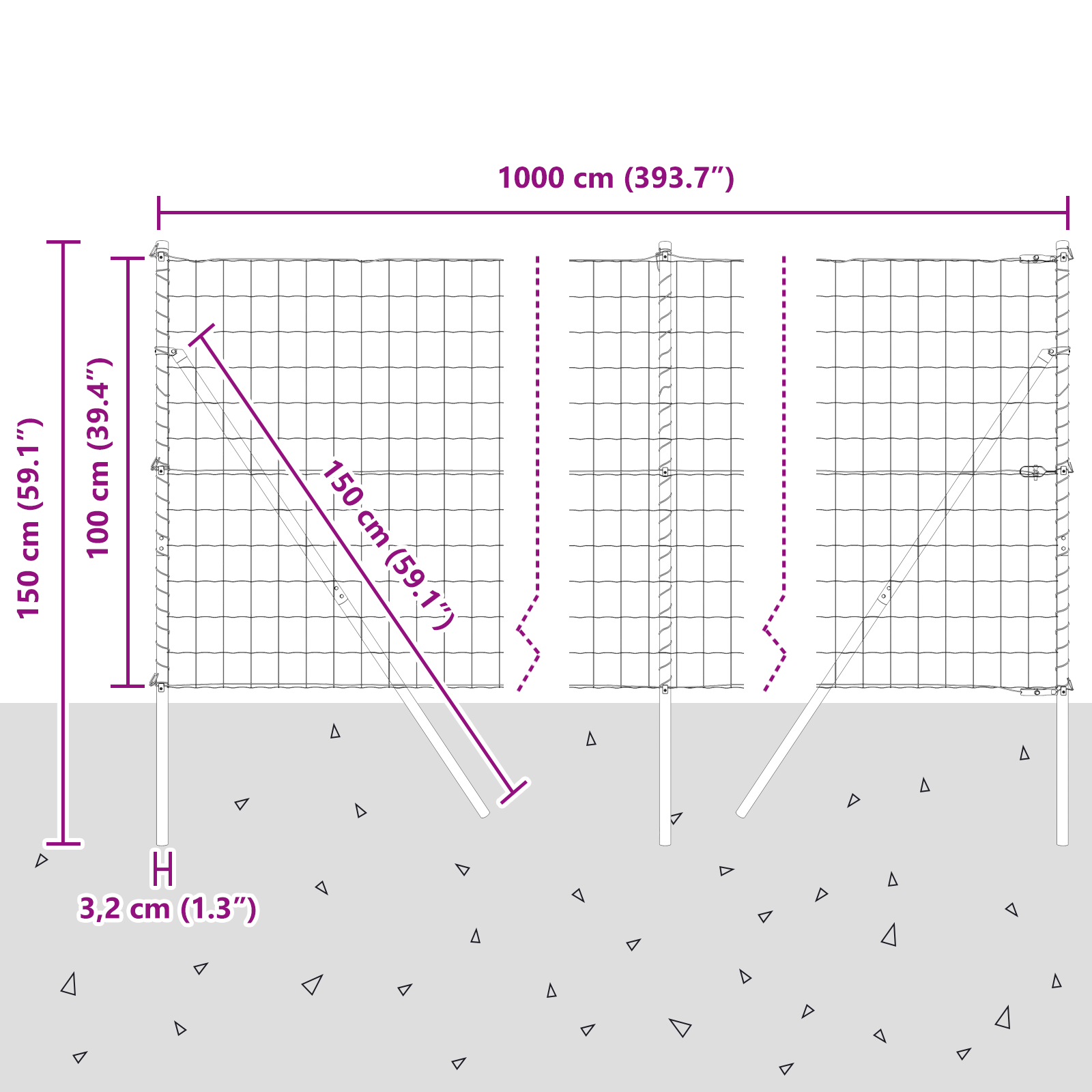 • Celkové rozměry: 1000 x 3,2 x 100 cm (D x Š x V)