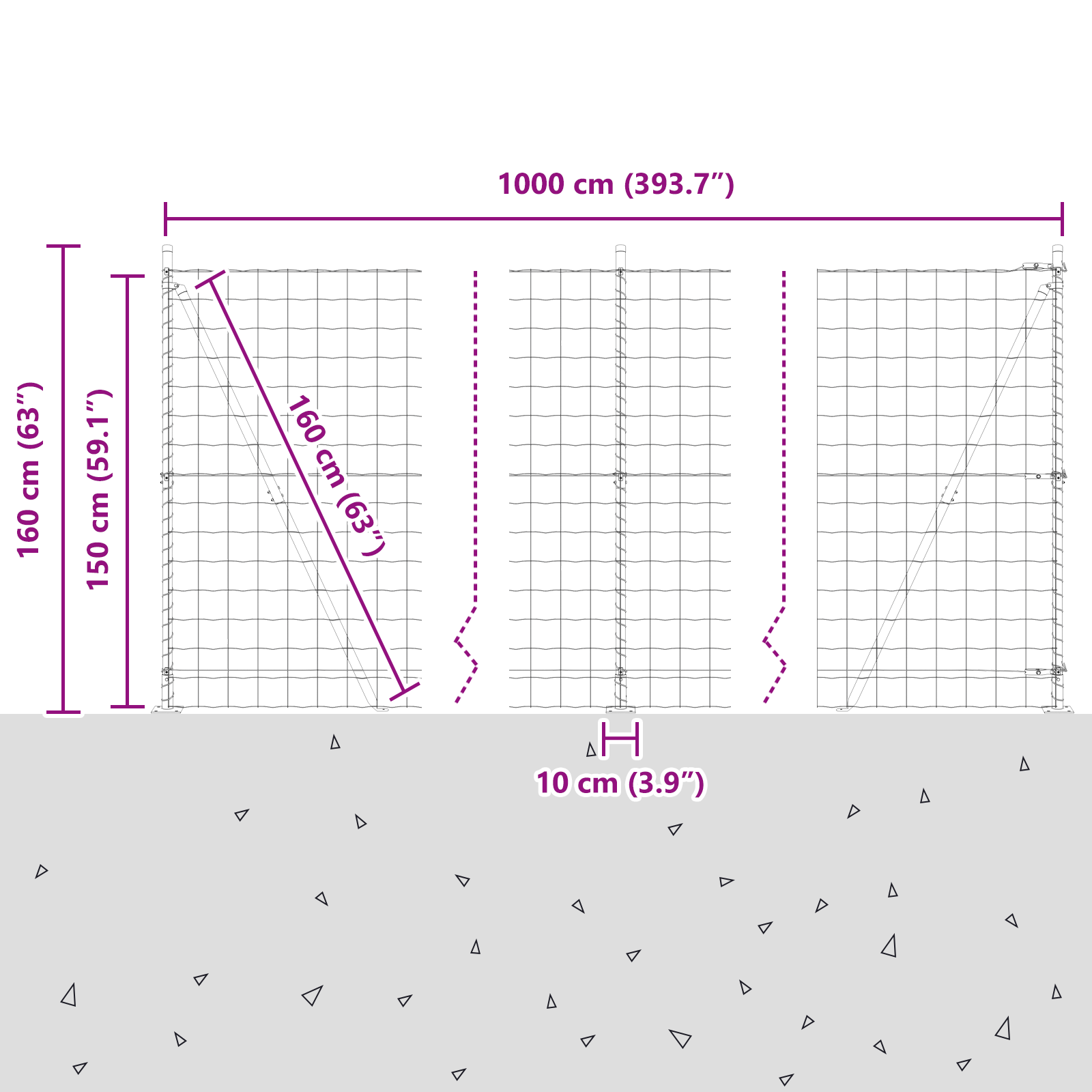 • Celkové rozměry: 1000 x 3.2 x 150 cm (D x Š x V)