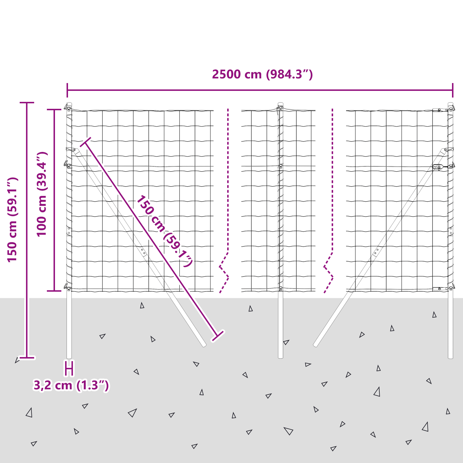 • Celkové rozměry: 2500 x 3.2 x 100 cm (D x Š x V)