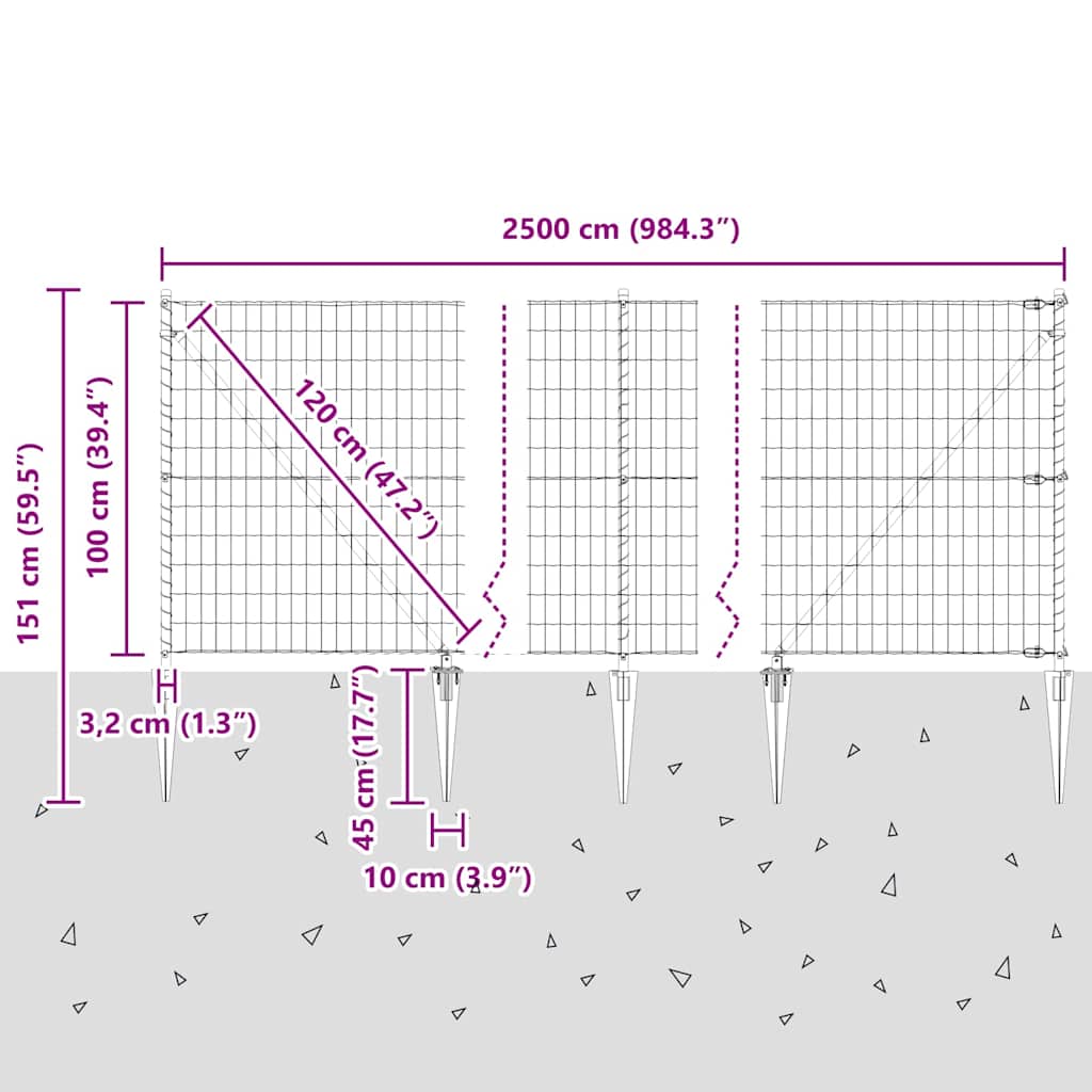 • Celkové rozměry: 2500 x 3.2 x 100 cm (D x Š x V)