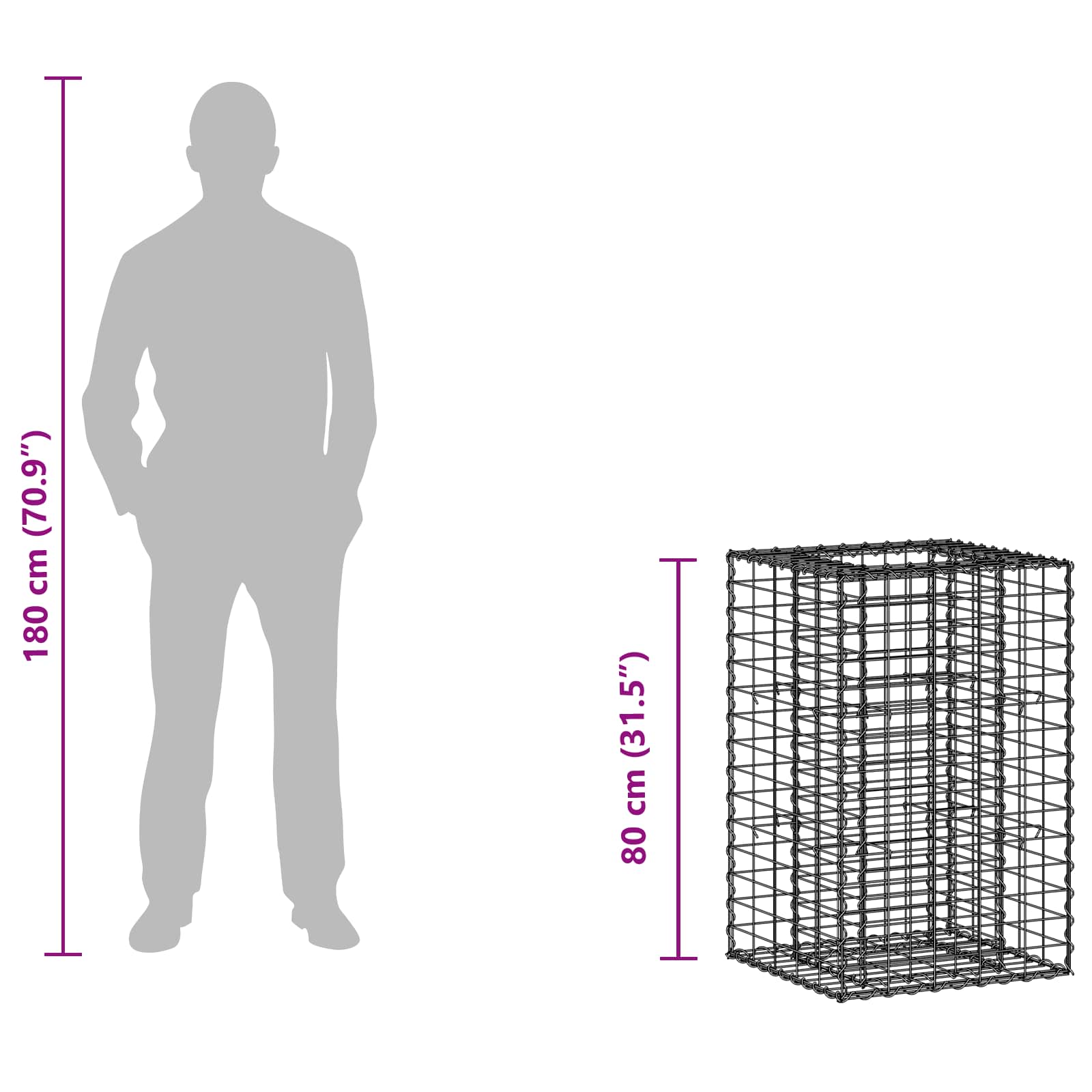 Gabionový vyvýšený záhon Stříbrná 50 x 50 x 80 cm