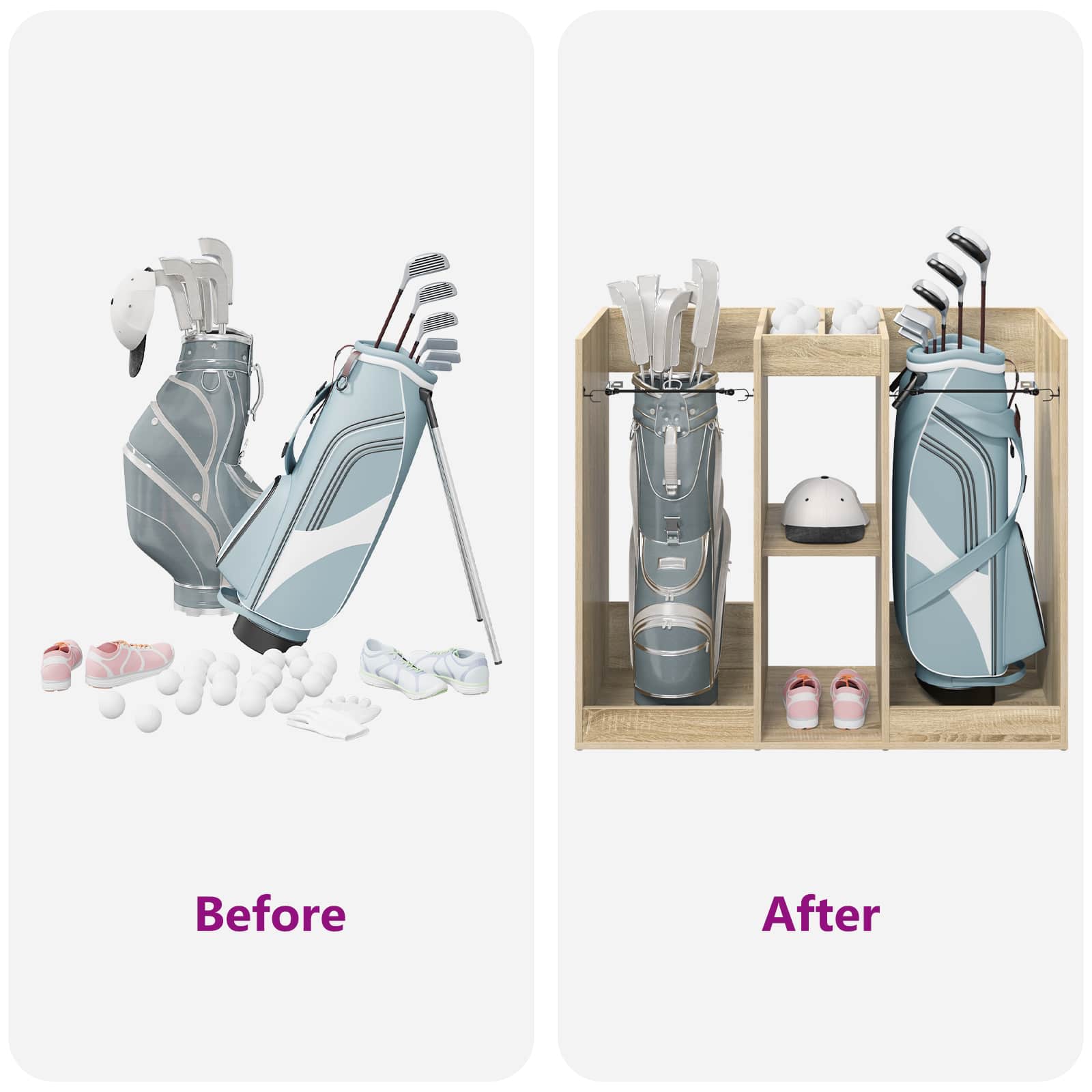 Tento dřevěný golfový kabinet je trefou do černého pro ty, co chtějí dostatek úložného prostoru v moderním stylu. Perfektně udělaný pro vnitřní použití, přináší špetku elegance do každé garáže nebo místnosti. Jeho design je jednoduchý a hladký, což skvěle sedí do každého interiéru. Efektivně ukládá vaše golfové věci a zajišťuje, že vše bude přehledné a stylové.