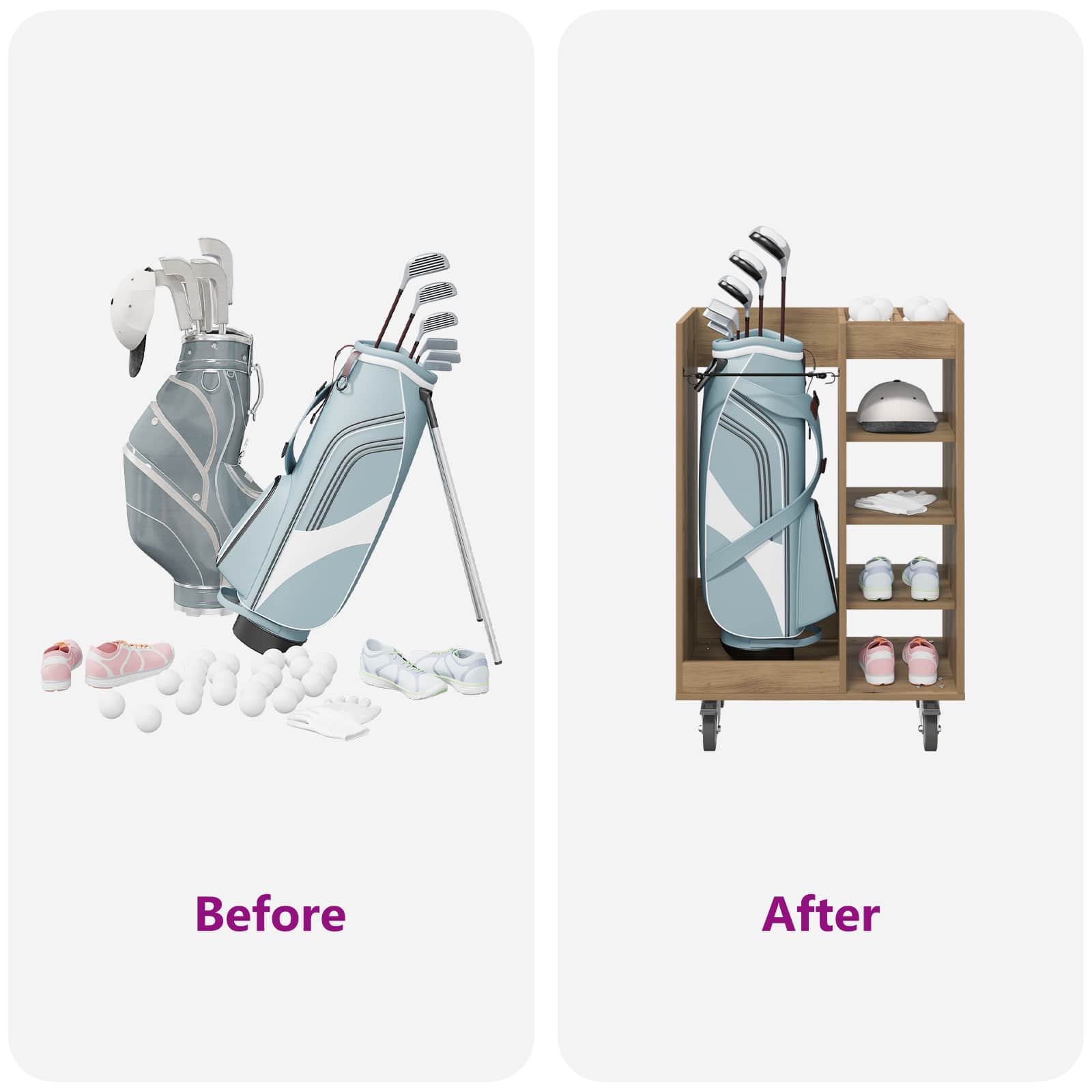 Tento dřevěný golfový kabinet je trefou do černého pro ty, co chtějí dostatek úložného prostoru v moderním stylu. Perfektně udělaný pro vnitřní použití, přináší špetku elegance do každé garáže nebo místnosti. Jeho design je jednoduchý a hladký, což skvěle sedí do každého interiéru. Efektivně ukládá vaše golfové věci a zajišťuje, že vše bude přehledné a stylové.