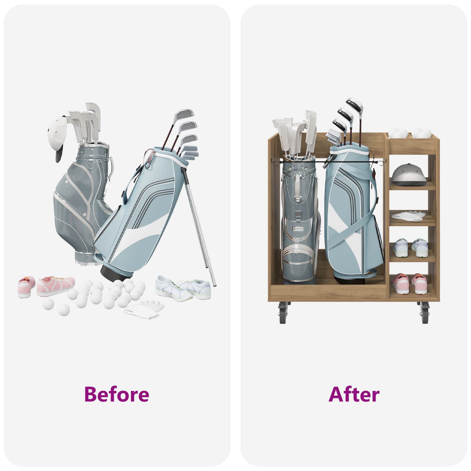 Tento dřevěný golfový kabinet je trefou do černého pro ty, co chtějí dostatek úložného prostoru v moderním stylu. Perfektně udělaný pro vnitřní použití, přináší špetku elegance do každé garáže nebo místnosti. Jeho design je jednoduchý a hladký, což skvěle sedí do každého interiéru. Efektivně ukládá vaše golfové věci a zajišťuje, že vše bude přehledné a stylové.