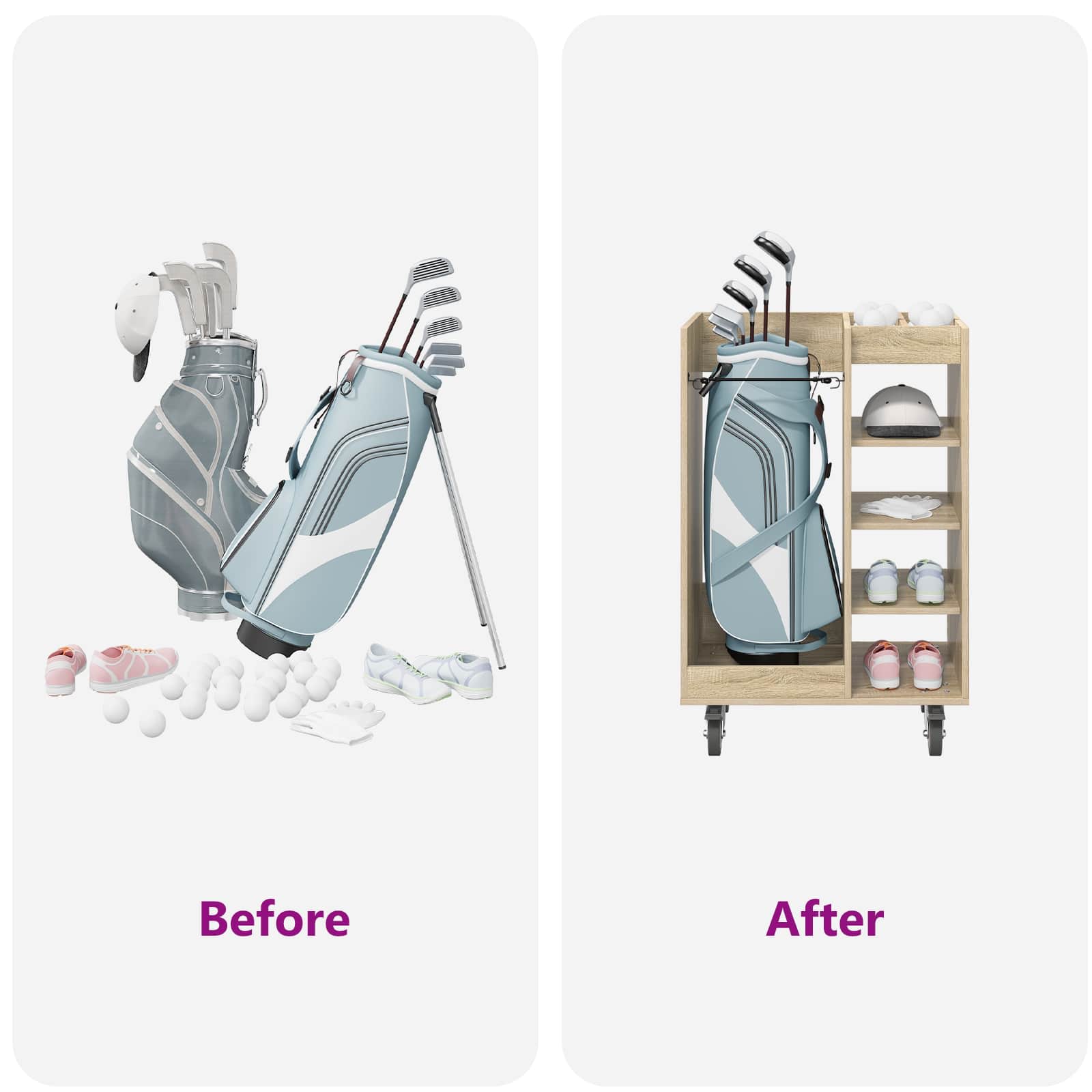 Tento dřevěný golfový kabinet je trefou do černého pro ty, co chtějí dostatek úložného prostoru v moderním stylu. Perfektně udělaný pro vnitřní použití, přináší špetku elegance do každé garáže nebo místnosti. Jeho design je jednoduchý a hladký, což skvěle sedí do každého interiéru. Efektivně ukládá vaše golfové věci a zajišťuje, že vše bude přehledné a stylové.