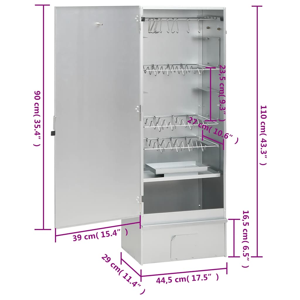 Grilovací trouba/udírna a štěpky 44,5x29x110cm pozinkovaná ocel