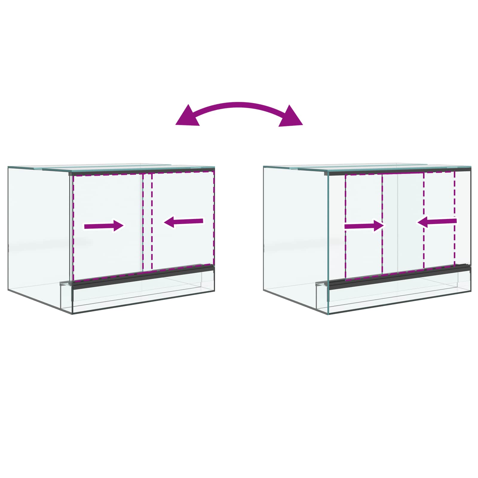 Tento skleněný habitat pro plazy a obojživelníky je super místo pro vaše mazlíčky, navržené tak, aby se cítili pohodlně a aby je bylo dobře vidět. S moderním stylem se hodí jak dovnitř, tak ven, a průhledné sklo mu dodává elegantní vzhled. Hladký povrch a čisté linie z něj dělají perfektní doplněk do jakéhokoliv prostoru, takže si majitelé mohou svá zvířata pěkně pozorovat.