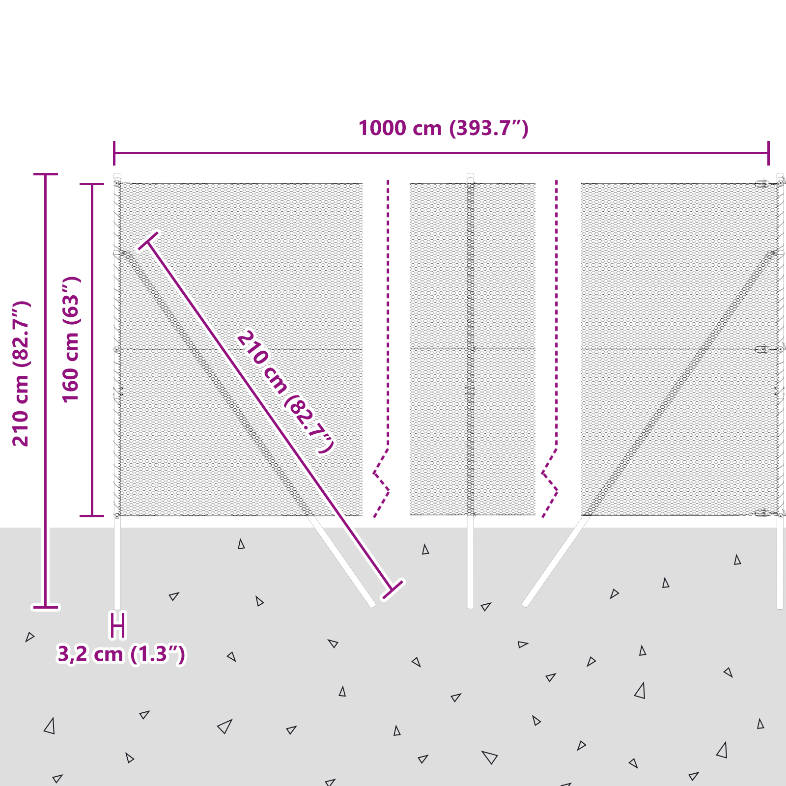 Plotový sloupek. Šedá 10 x 1,6 m (13 mm síť) Ocel a PVC