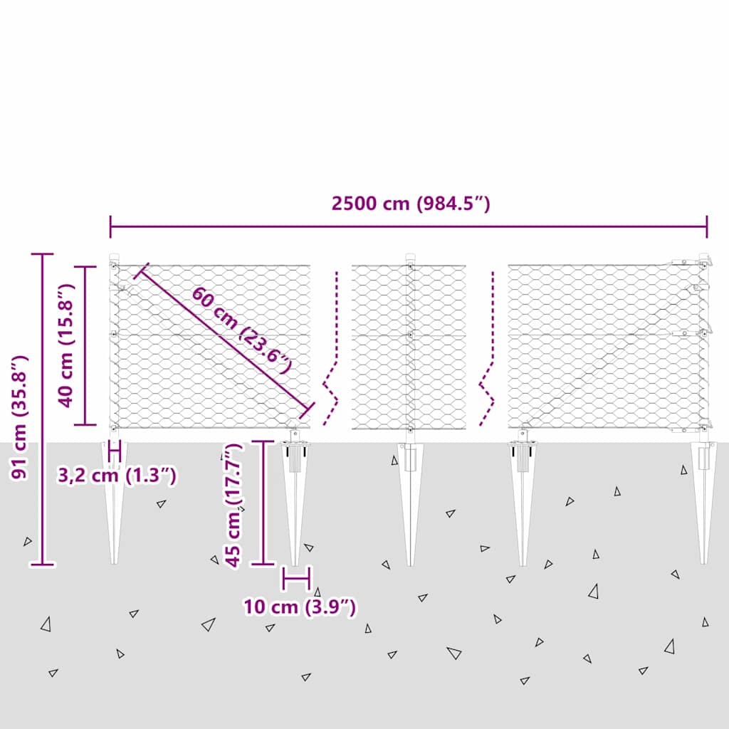 Plotový sloupek. Stříbrná 25 x 0,4 m (36 mm síť) Ocel