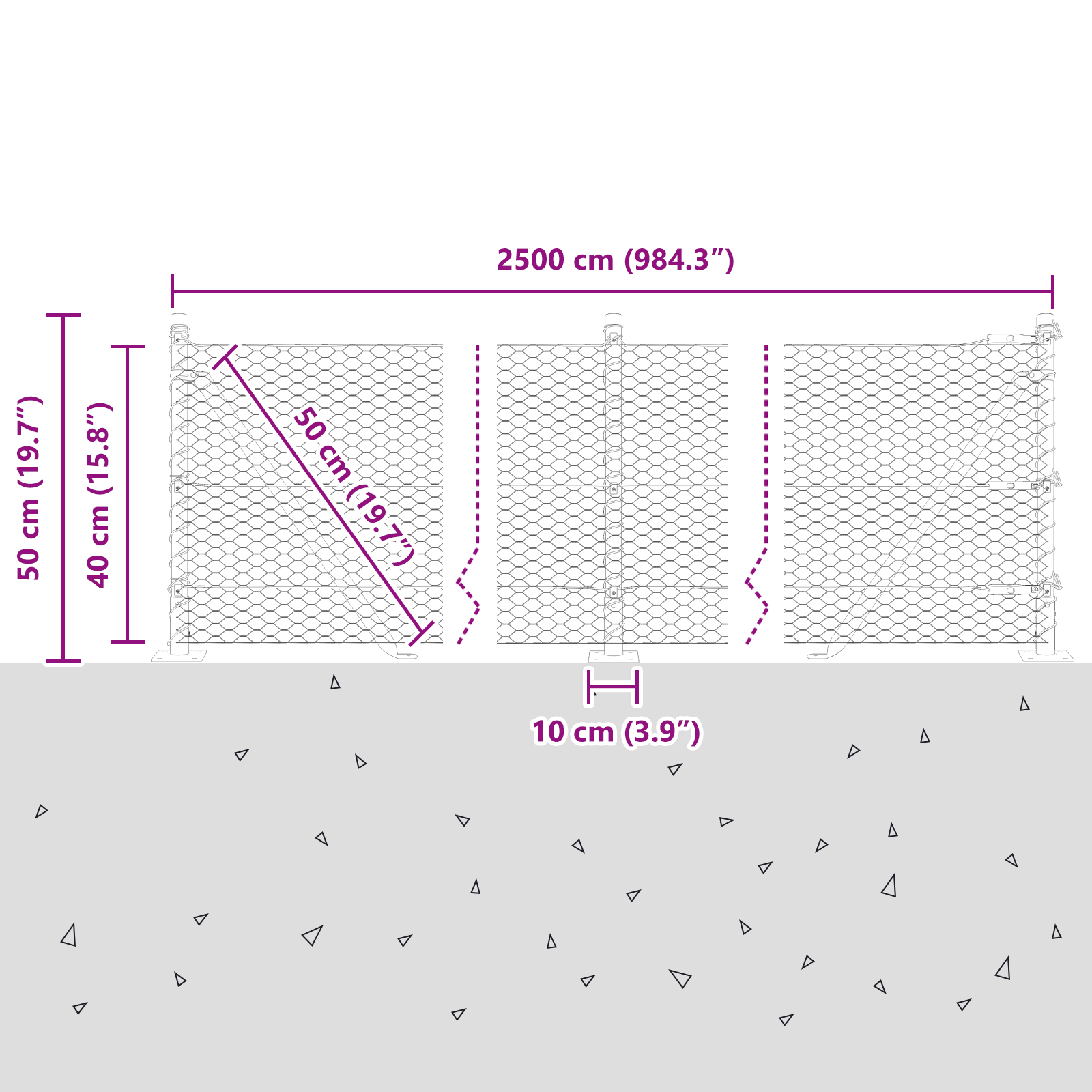 • Celkové rozměry: 2500 x 3,2 x 40 cm (D x Š x V)