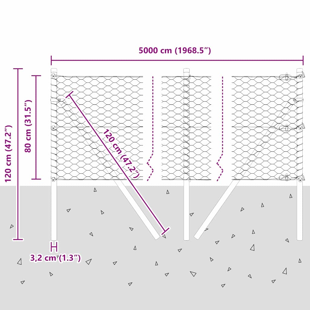 Plotový sloupek. Stříbrná 50 x 0,8 m (36 mm síť) Ocel