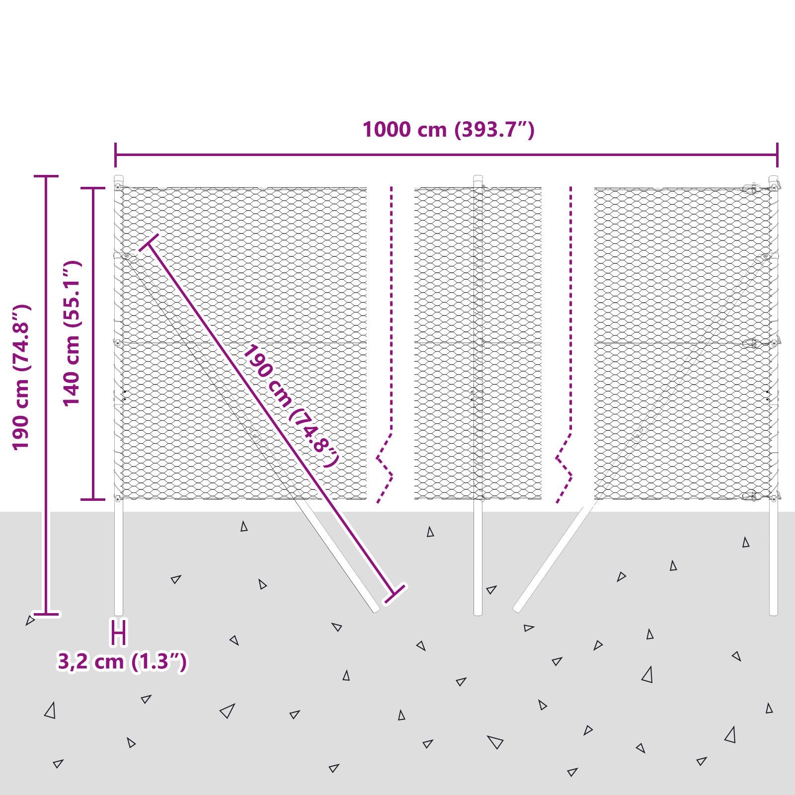 Plotový sloupek. Stříbrná 10 x 1,4 m (25 mm síť) Ocel