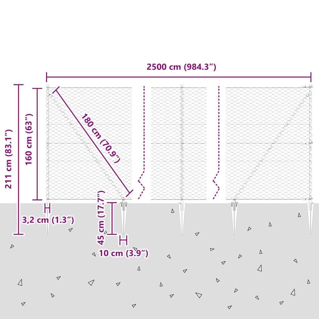• Celkové rozměry: 2500 x 3,2 x 160 cm (D x Š x V)