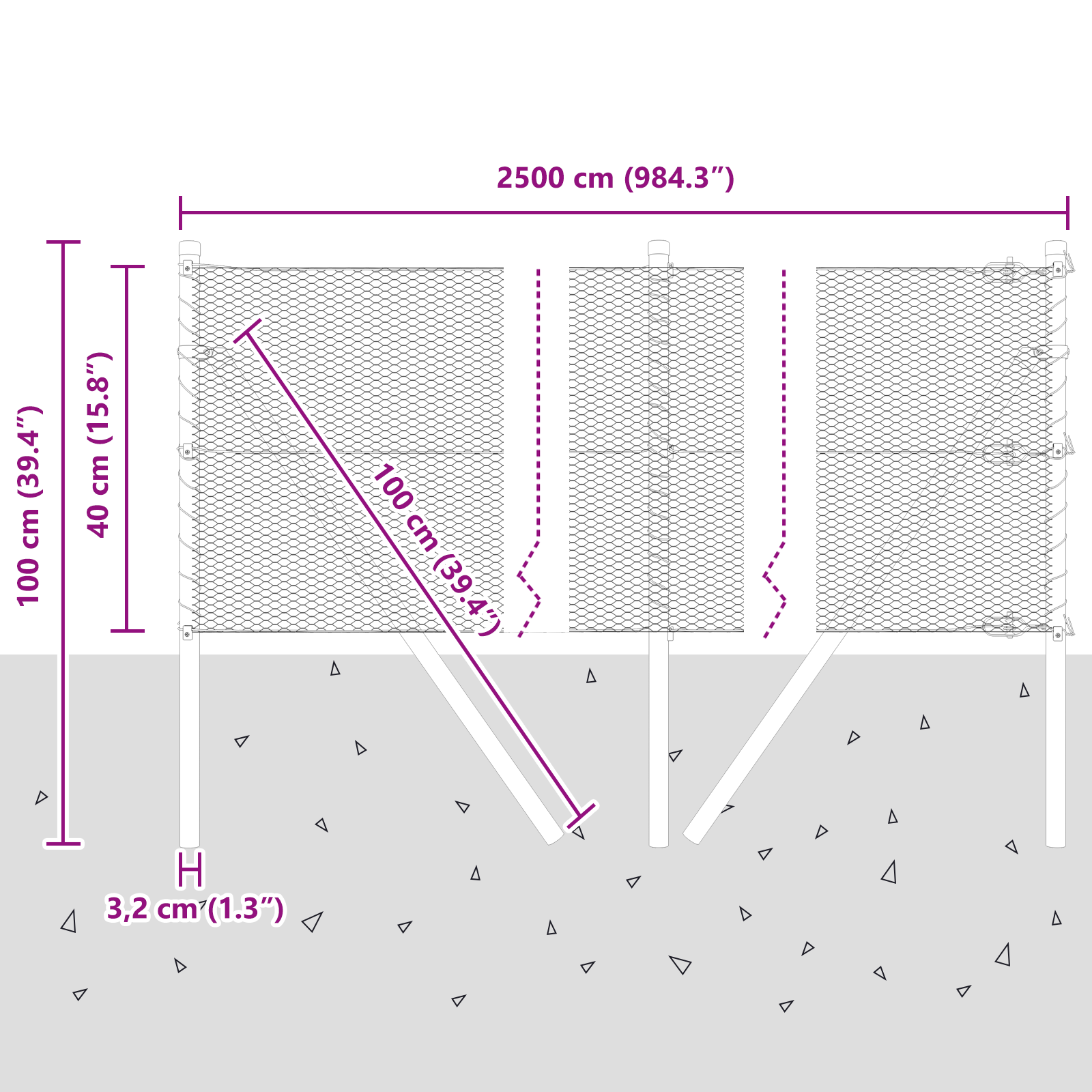 • Celkové rozměry: 2500 x 3,2 x 40 cm (D x Š x V)