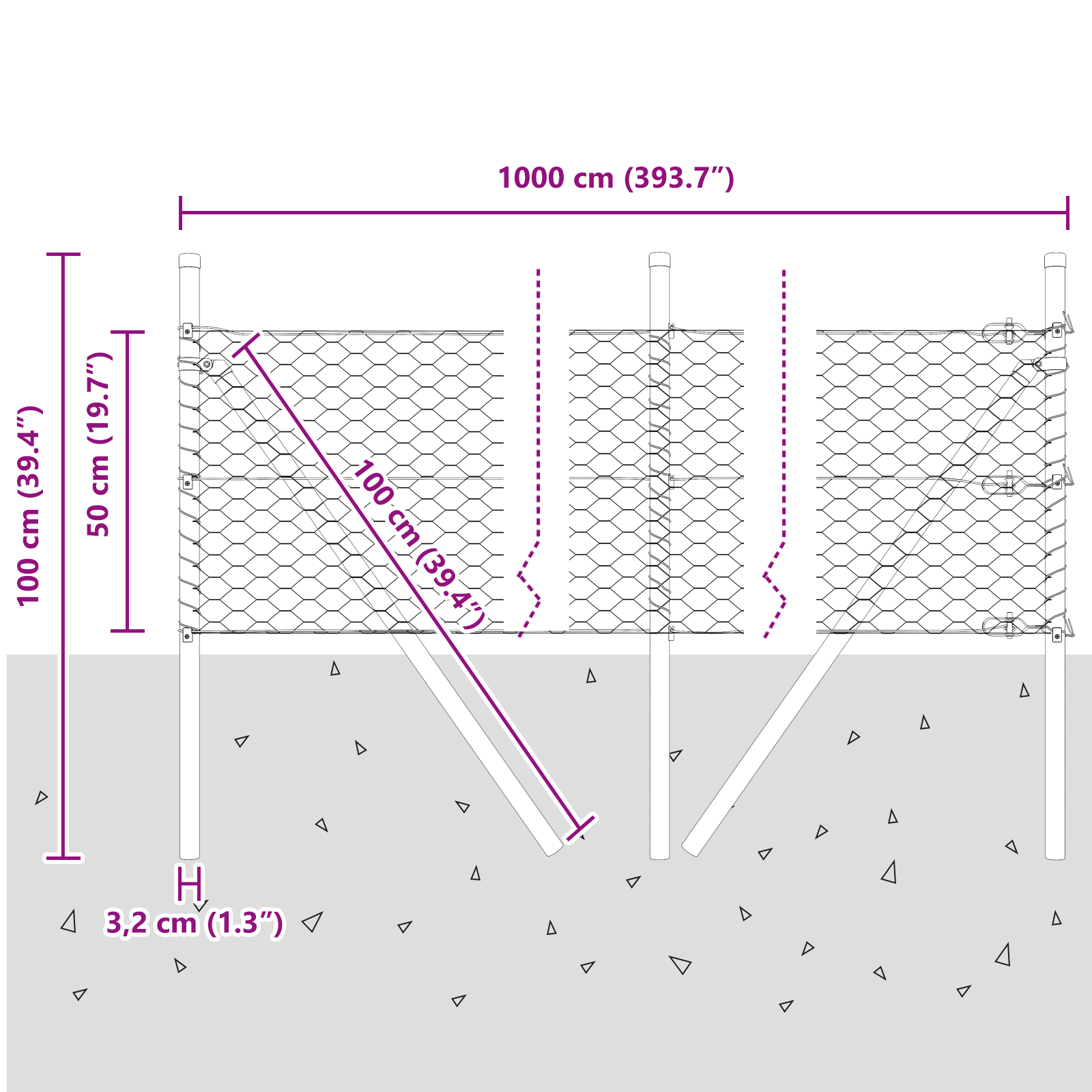 Plotový sloupek. Šedá 10 x 0,5 m (36 mm pletivo) Ocel a PVC
