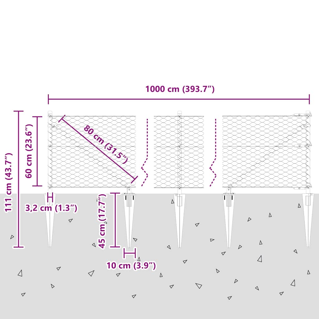 Plotový sloupek. Šedá 10 x 0,6 m (36 mm síť) Ocel a PVC