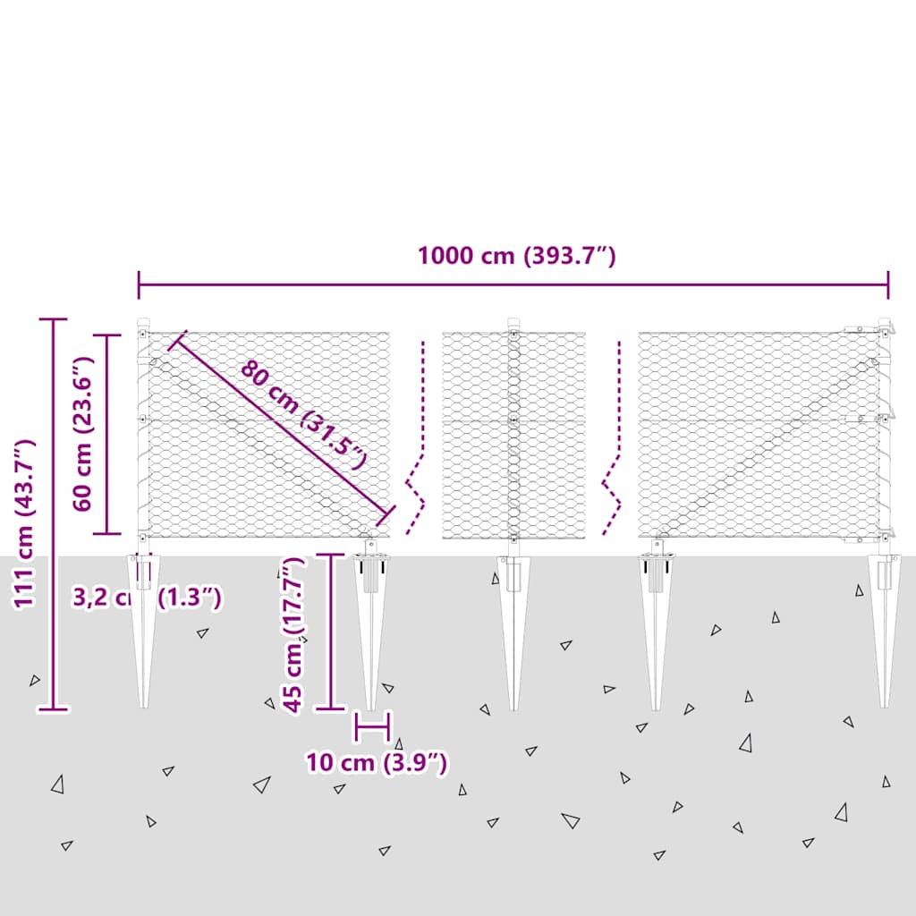 Plotový sloupek. Zelená 10 x 0,6 m (25 mm síť) Ocel a PVC