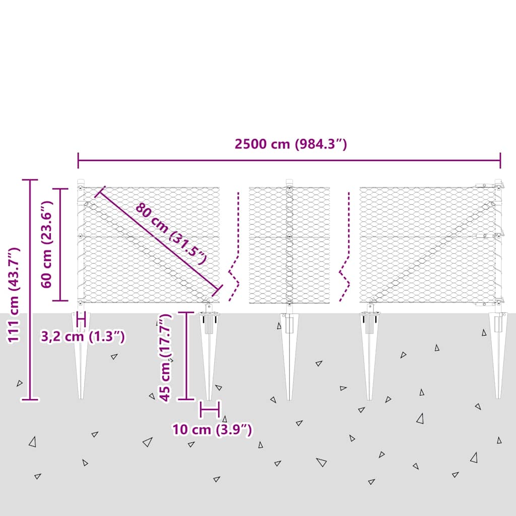 Plotový sloupek. Zelená 25 x 0,6 m (25 mm pletivo) Ocel a PVC