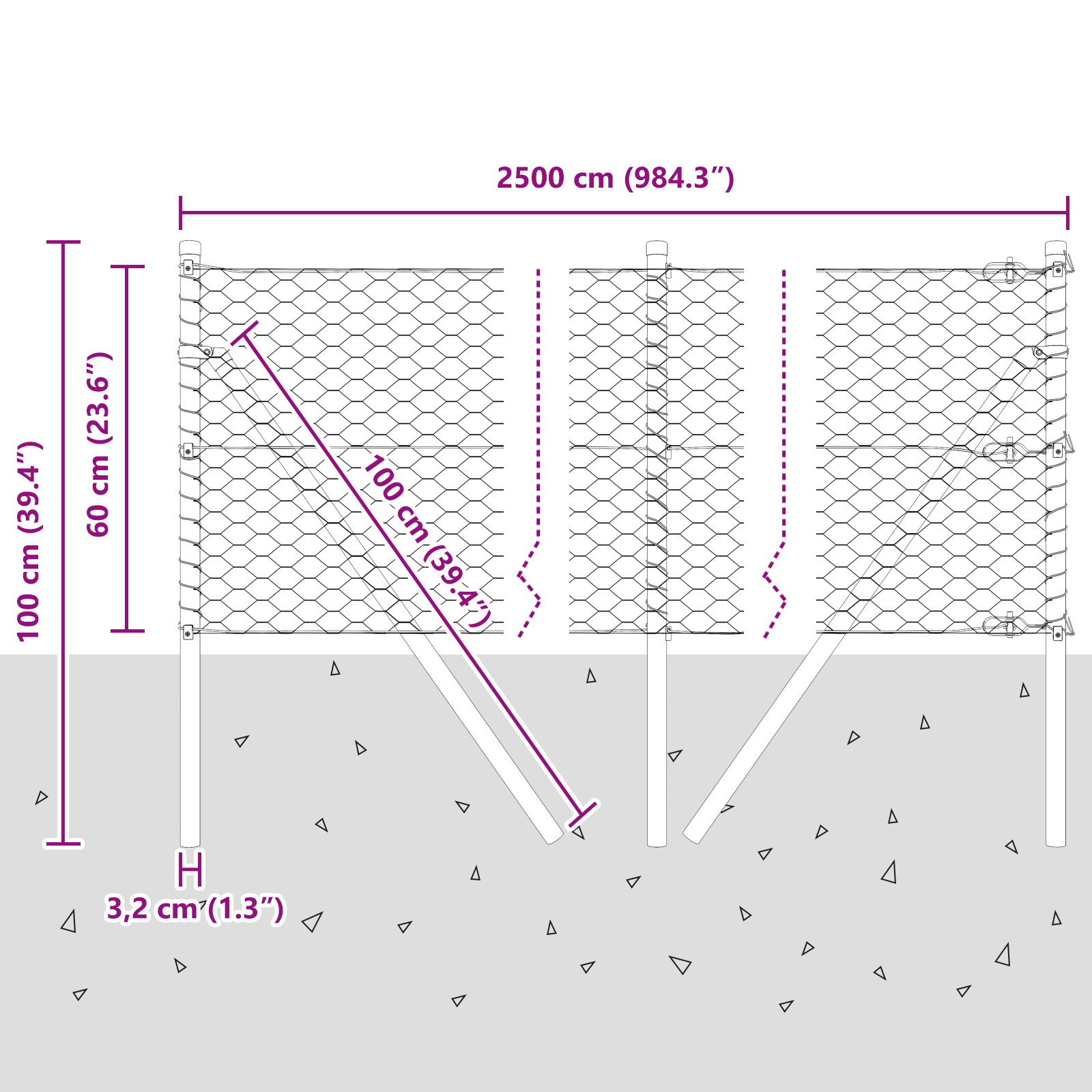 Plotový sloupek. Zelená 25 x 0,6 m (36 mm síť) Ocel a PVC