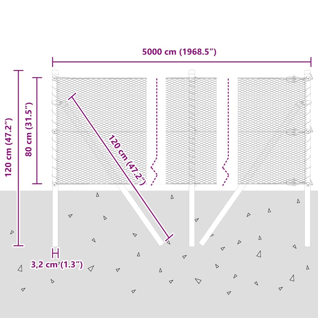 Plotový sloupek. Zelená 50 x 0,8 m (13 mm síť) Ocel a PVC
