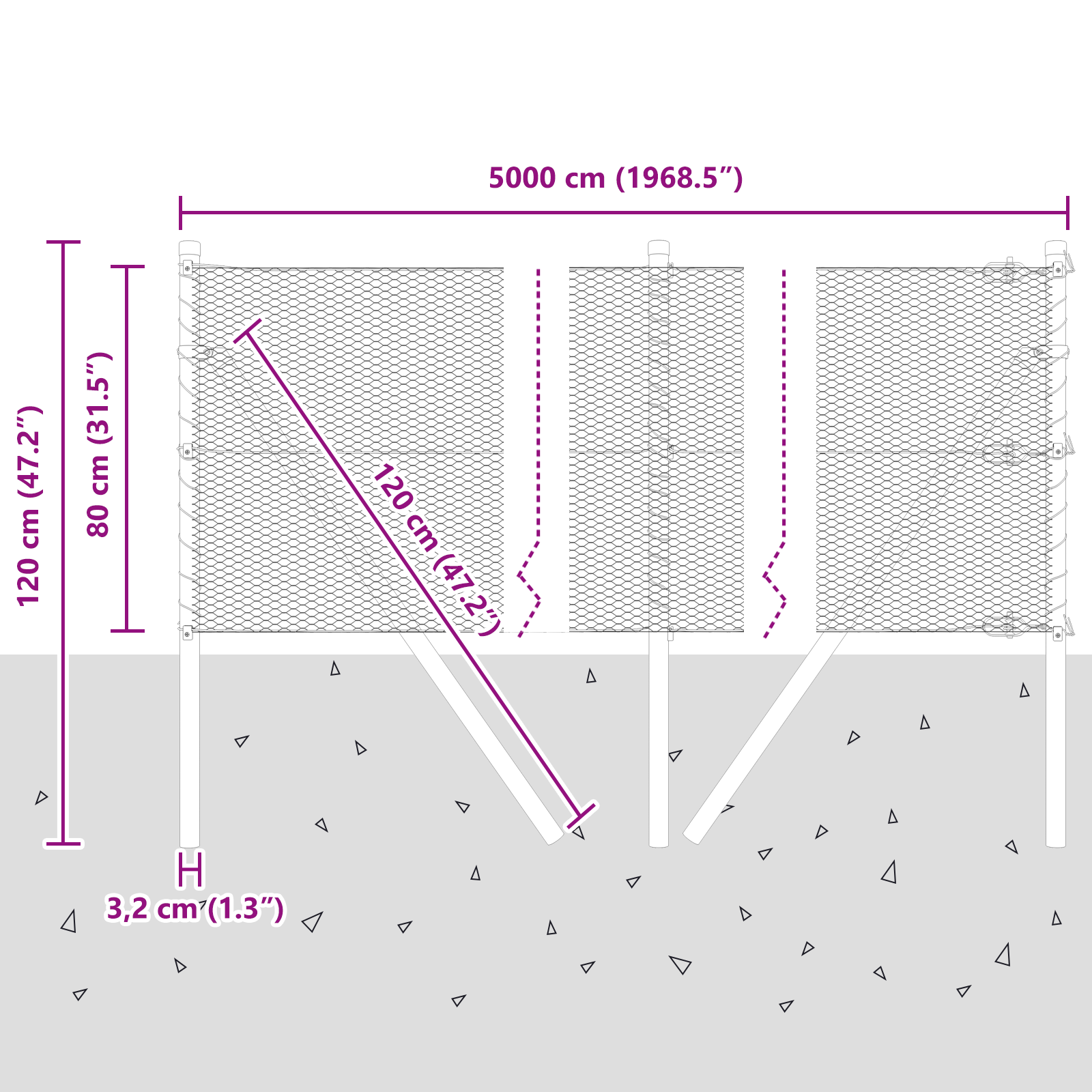 • Celkové rozměry: 5000 x 3,2 x 80 cm (D x Š x V)