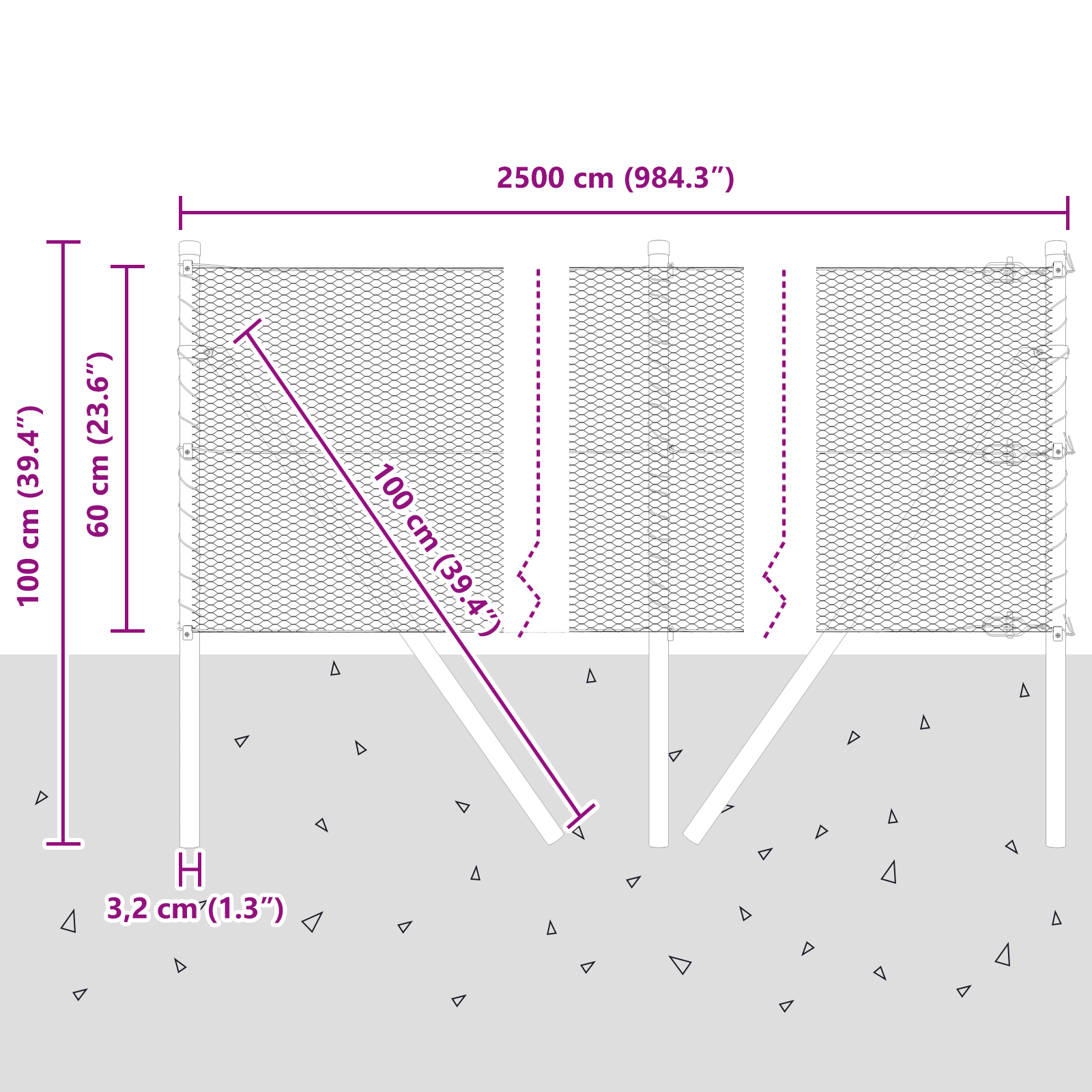 Plotový sloupek. Stříbrná 25 x 0,6 m (13 mm síť) Ocel
