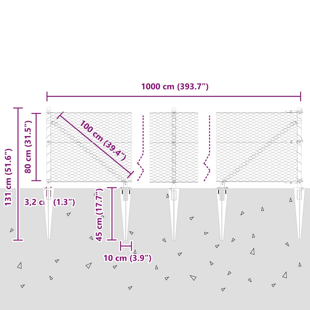 Plotový sloupek. Stříbrná 10 x 0,8 m (25 mm síť) Ocel