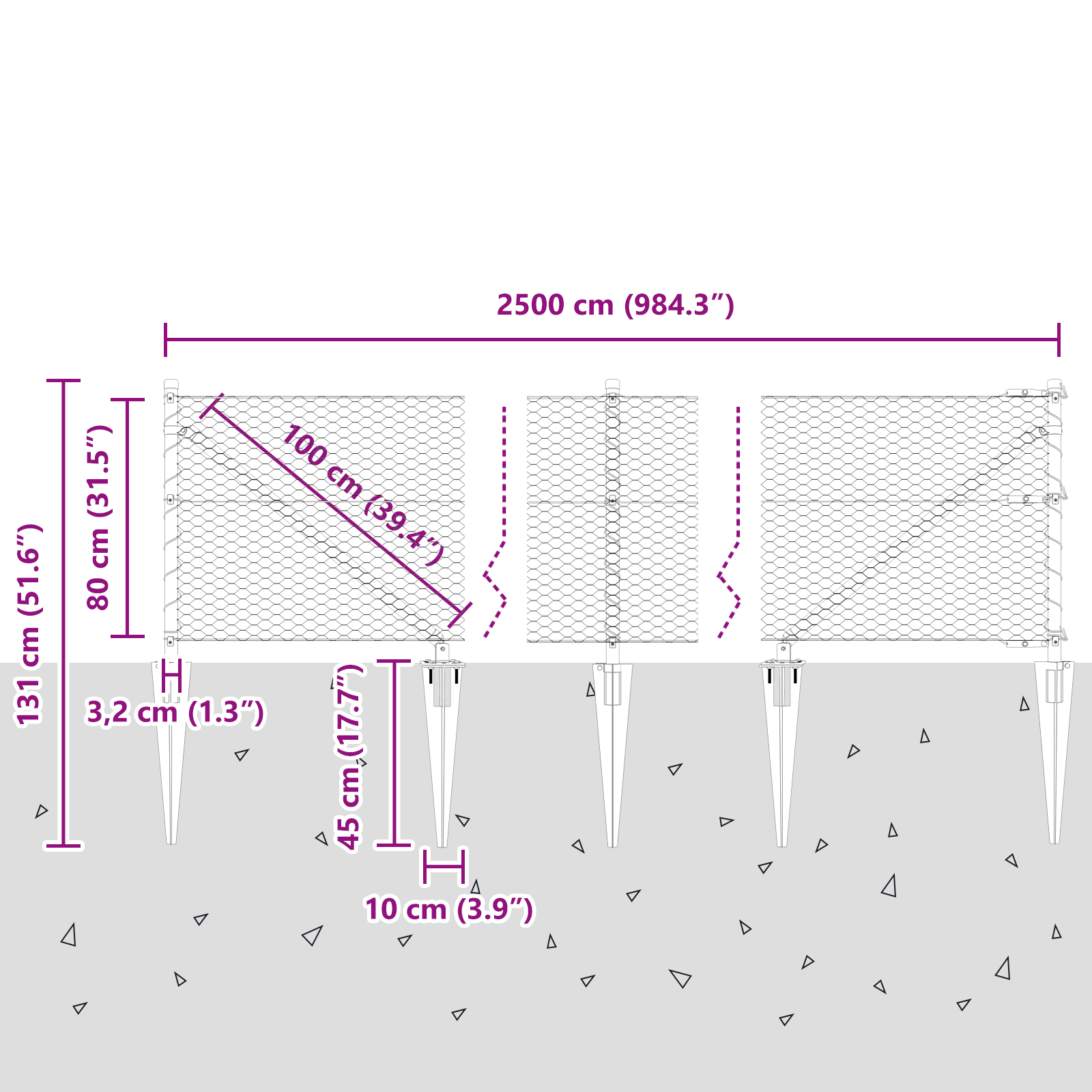 Plotový sloupek. Stříbrná 25 x 0,8 m (25 mm síť) Ocel