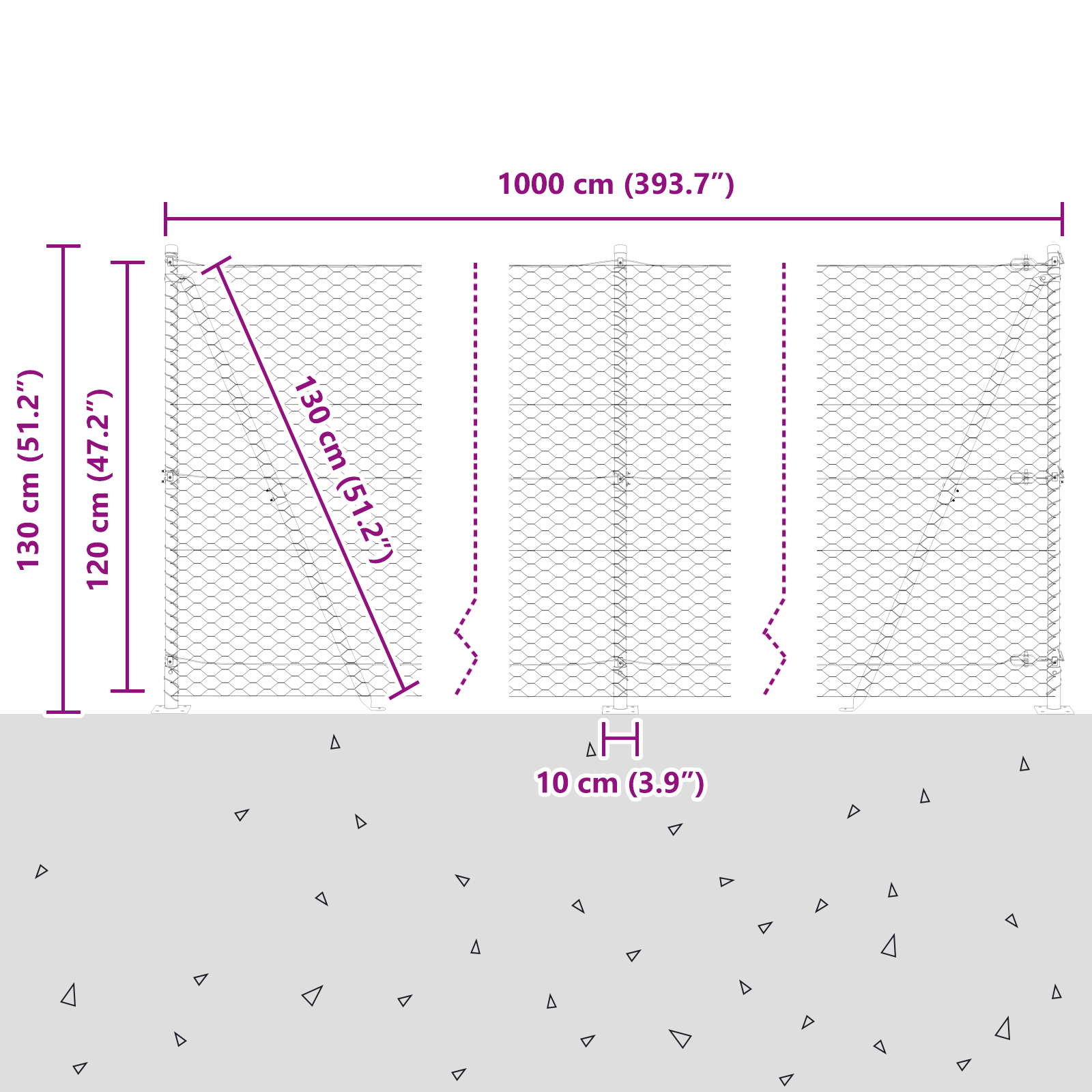 • Celkové rozměry: 1000 x 3,2 x 120 cm (D x Š x V)