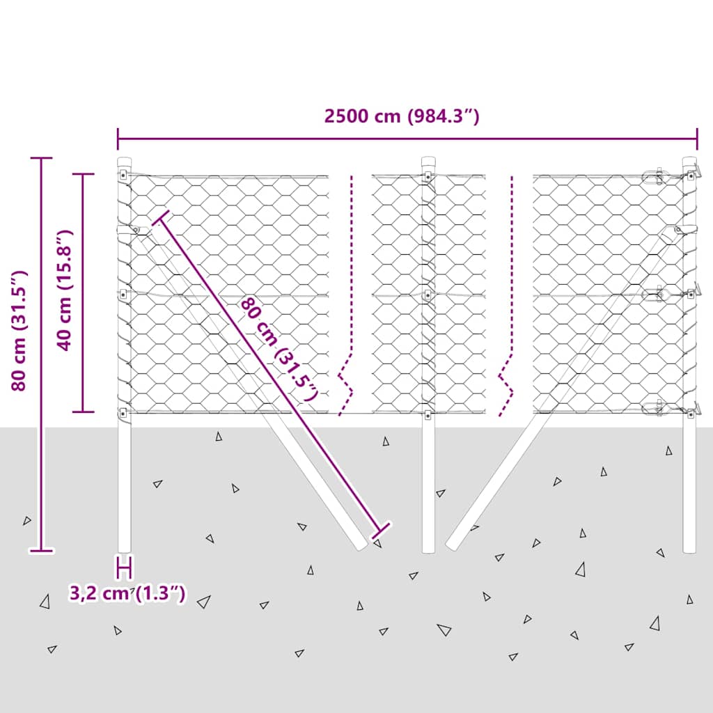 Plotový sloupek. Šedá 25 x 0,4 m (50 mm síť) Ocel a PVC