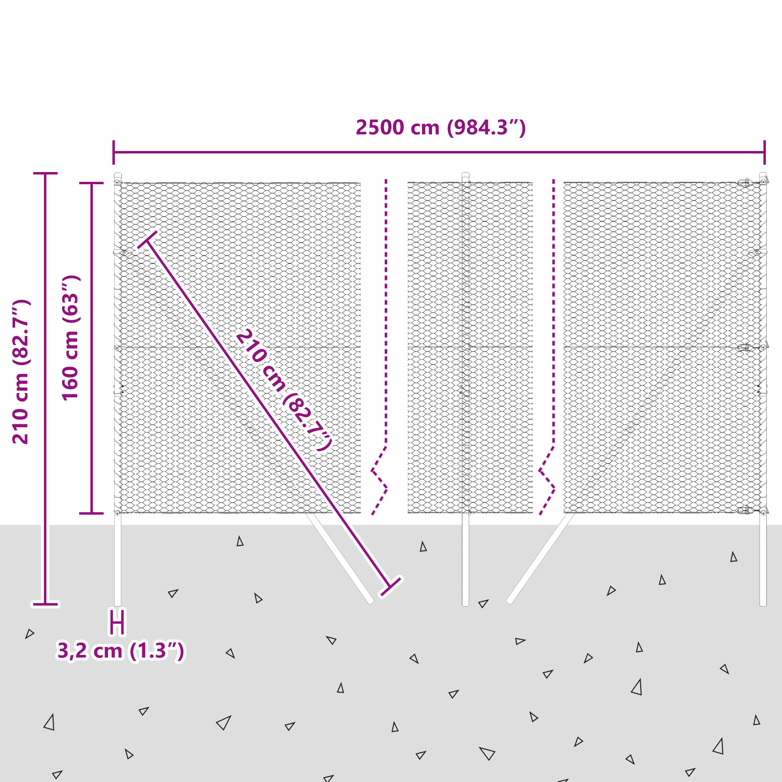 Plotový sloupek. Šedá 25 x 1,6 m (25 mm síť) Ocel a PVC