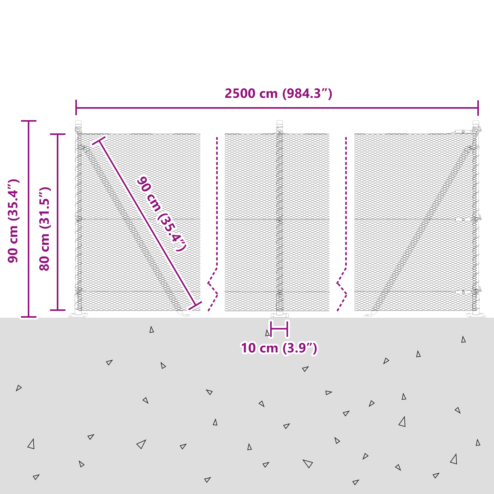 • Celkové rozměry: 2500 x 3,2 x 80 cm (D x Š x V)