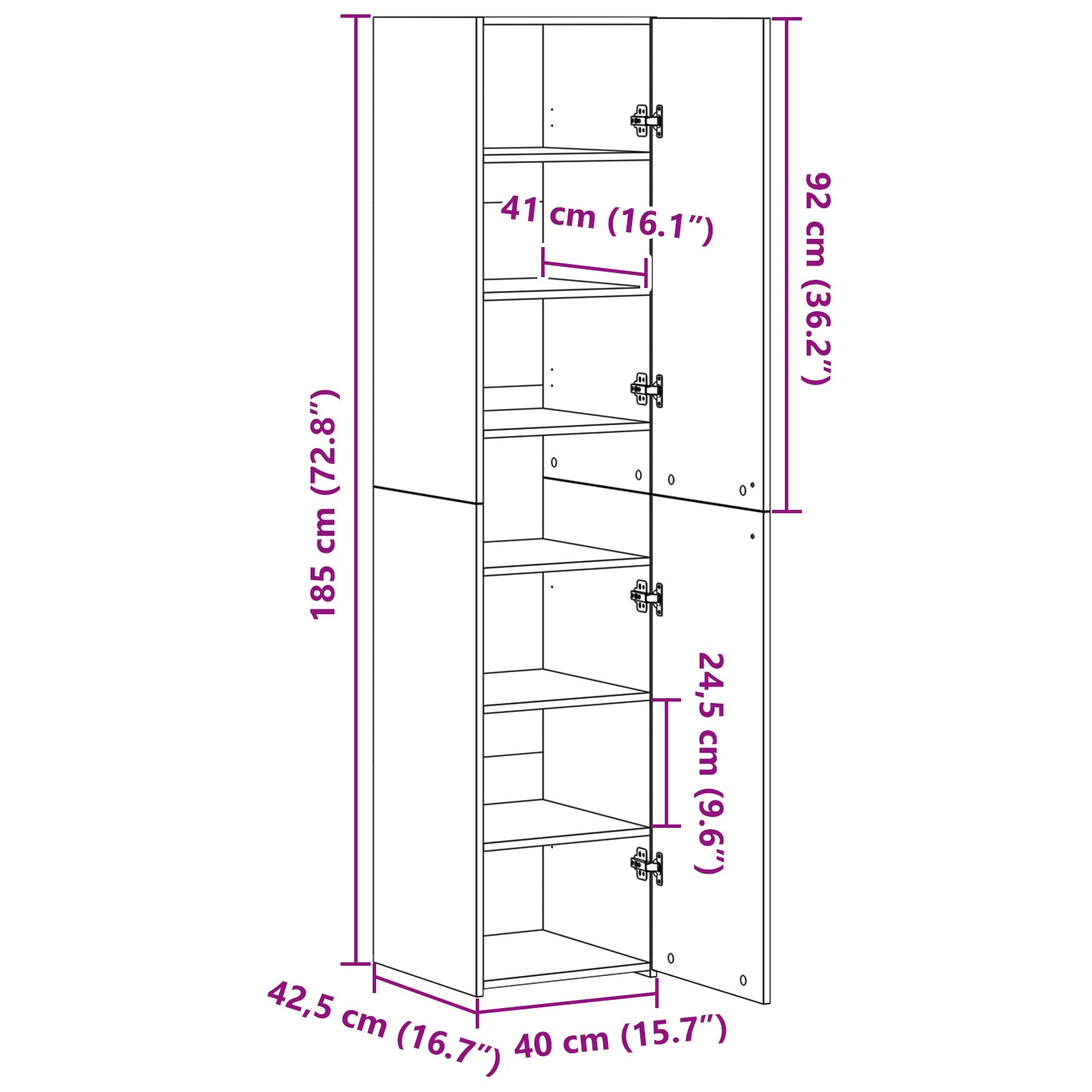 • Přesně promyšlené rozměry S rozměry 40 x 42,5 x 185 cm se tenhle skříň vejde do běžných pokojových uspořádání, nabízí spoustu úložného místa, aniž by zbytečně zabíral prostor. Jeho vysoký, úzký profil je ideální pro ty, co hledají vertikální úložná řešení, aniž by obětovali podlahový prostor.