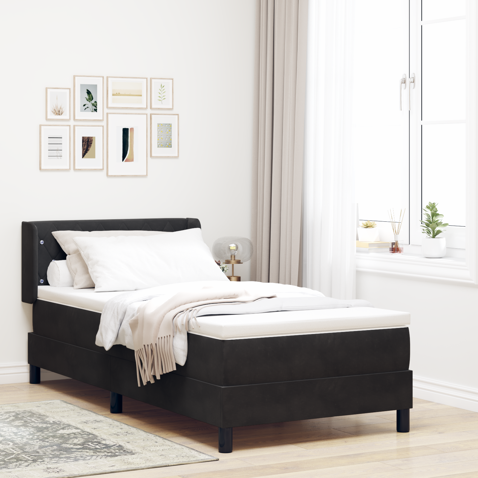 Postel s boxspringem s matrací Černá 200 x 90 cm Polyester