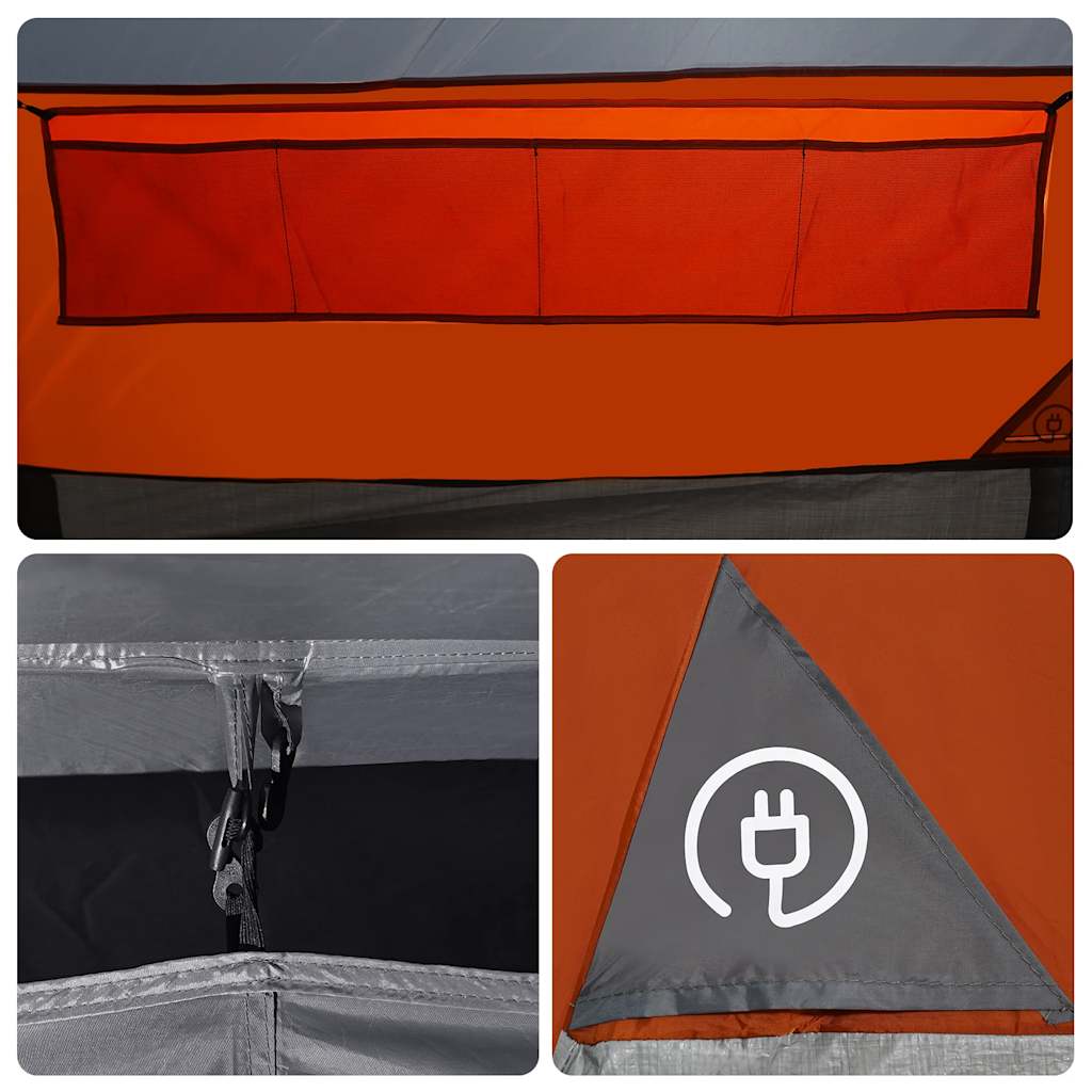 Kempingový stan tunel pro 3 osoby šedý a oranžový nepromokavý