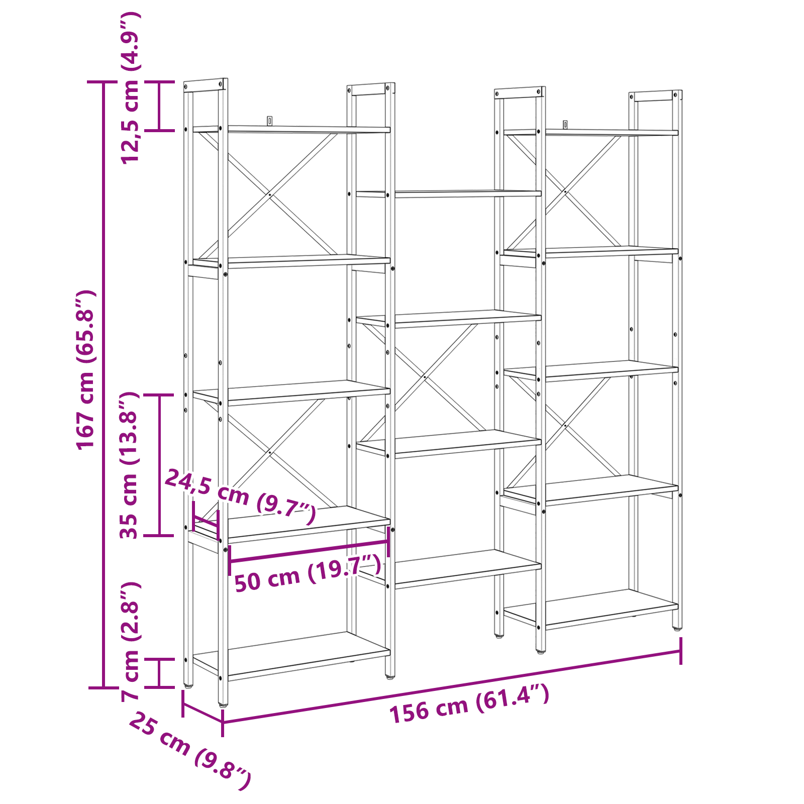Knihovna Černý dub 156 x 25 x 167 cm kompozitní dřevo