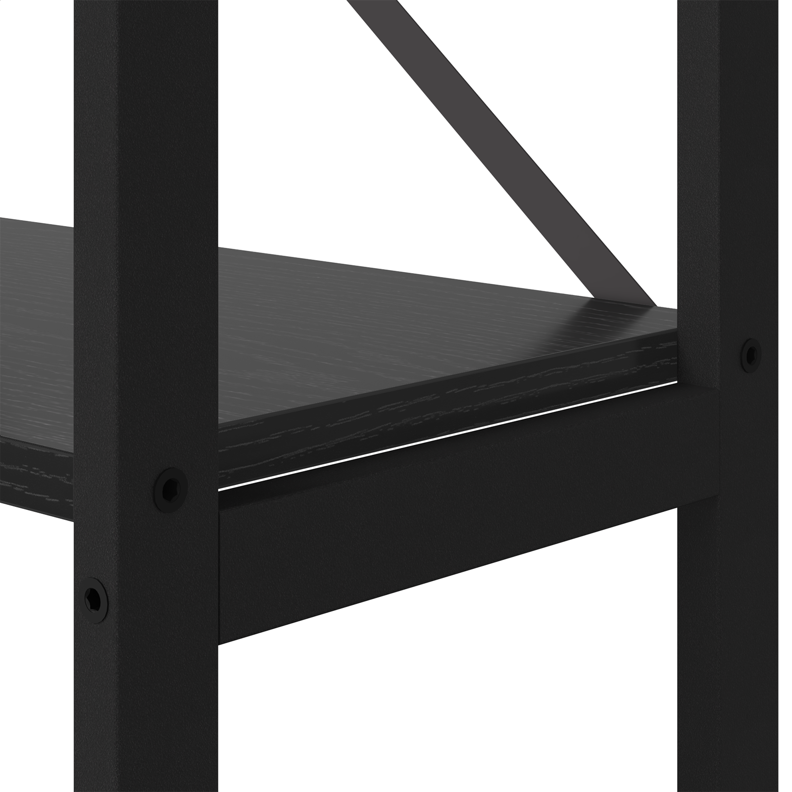 • Černý ocelový rám: Rám je vyroben z pevné oceli v elegantní černé, což zajišťuje jak sílu, tak estetiku. Robusní stavba unese váhu mnoha předmětů a zajišťuje stabilní a bezpečný přístup.