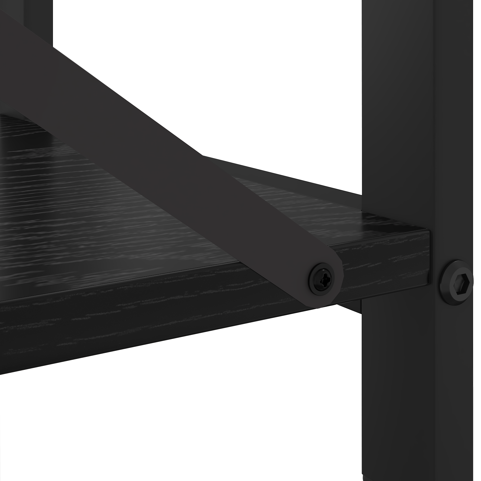 • Černý ocelový rám: Rám je vyroben z pevné oceli v elegantní černé, což zajišťuje jak sílu, tak estetiku. Robusní stavba unese váhu mnoha předmětů a zajišťuje stabilní a bezpečný přístup.